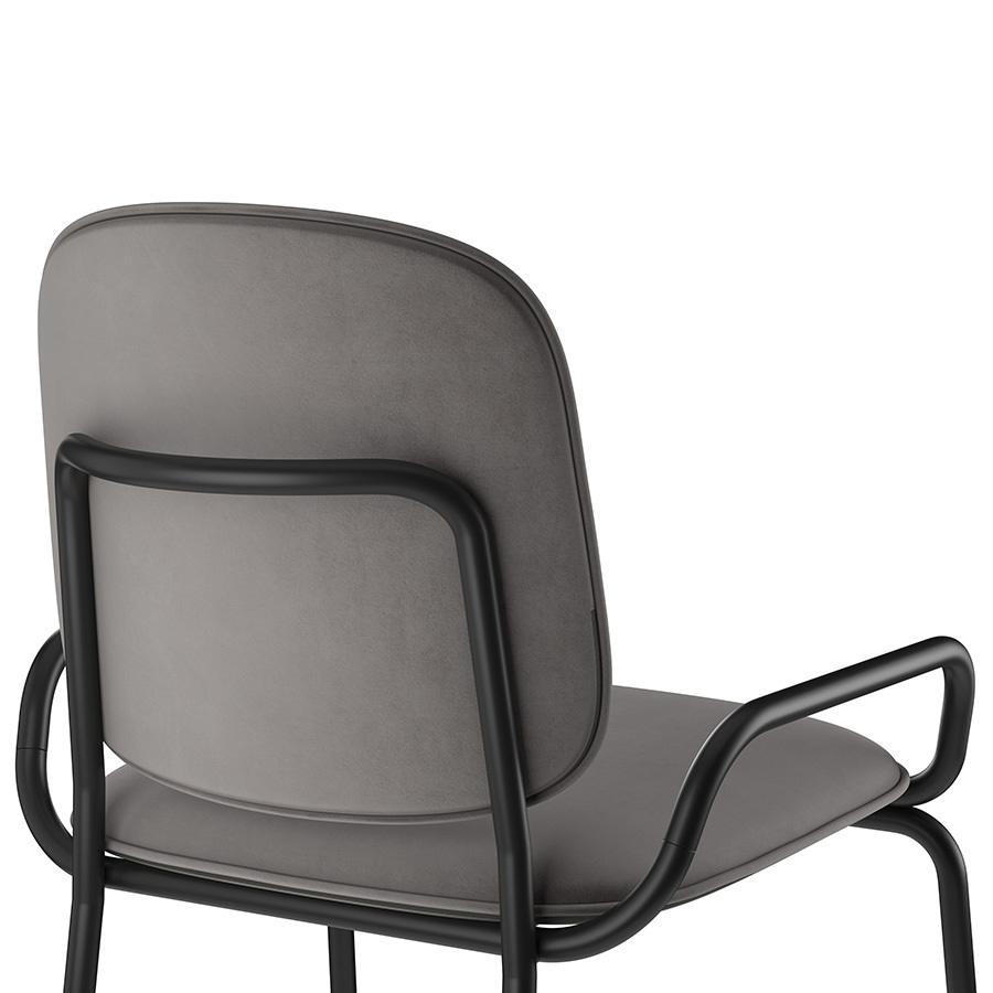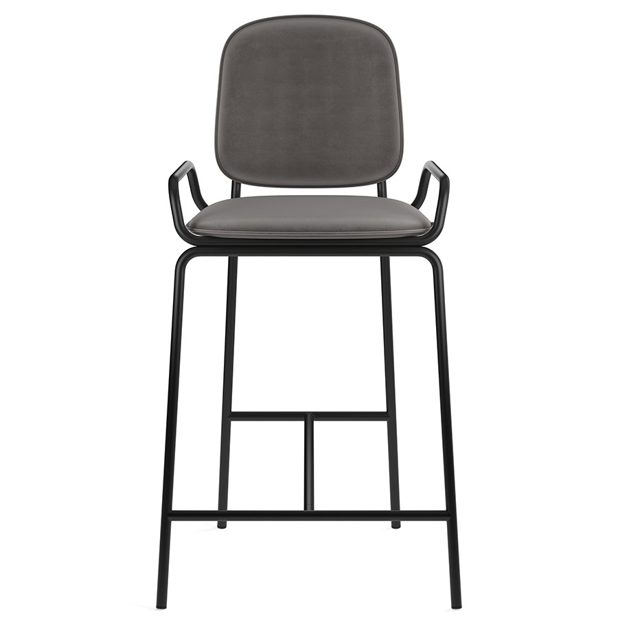 Стул полубарный Double Frame имеет удобную посадку за счет высокой спинки и широкого основания. Ножки плавно переходят в подлокотники и в нижней части соединяются металлической рамой, которая служит подставкой для ног. Такое дизайнерское решение создает дополнительный комфорт во время сидения.