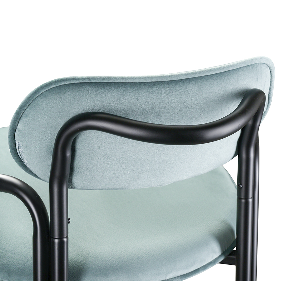 Стальное основание с порошковым покрытием делает конструкцию прочной и надежной, а мягкий велюр с бархатистой текстурой обеспечивает тактильный комфорт. Ткань обивки обладает высокими показателями износостойкости. Используемый в качестве наполнителя пенополиуретан отличается комфортной плотностью и жесткостью.