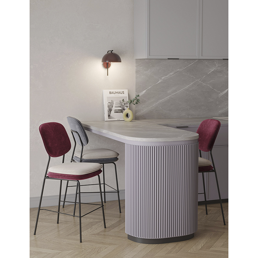 Стул полубарный Pea с контрастным кантом и мягкой обивкой из бархатистого велюра станет настоящим украшением интерьера и идеальным выбором для ценителей качественной и элегантной мебели.