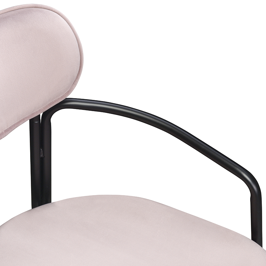Стальное основание с порошковым покрытием делает конструкцию прочной и надежной, а мягкий велюр с бархатистой текстурой обеспечивает тактильный комфорт. Ткань обивки обладает высокими показателями износостойкости. Используемый пенополиуретан отличается комфортной плотностью и жесткостью.