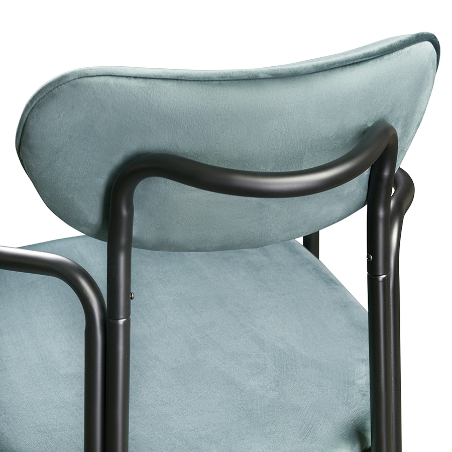 Стальное основание с порошковым покрытием делает конструкцию прочной и надежной, а мягкий велюр с бархатистой текстурой обеспечивает тактильный комфорт. Ткань обивки обладает высокими показателями износостойкости. Используемый пенополиуретан отличается комфортной плотностью и жесткостью.