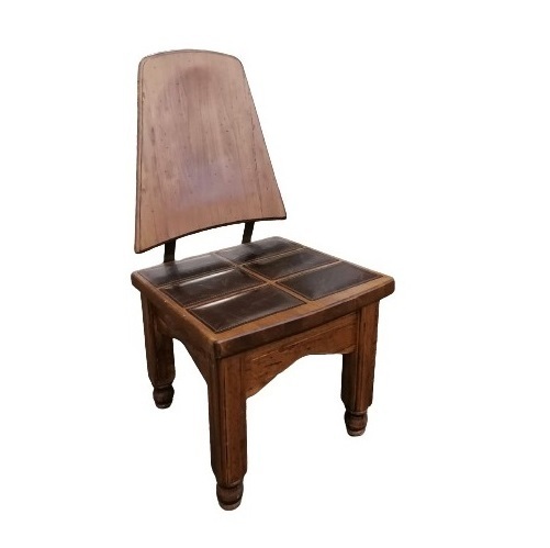 Стул из средиземноморского свеилого тополя с кожаными вставками, состаренный естественным путём с помощью жуков-короедов.