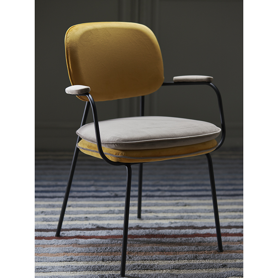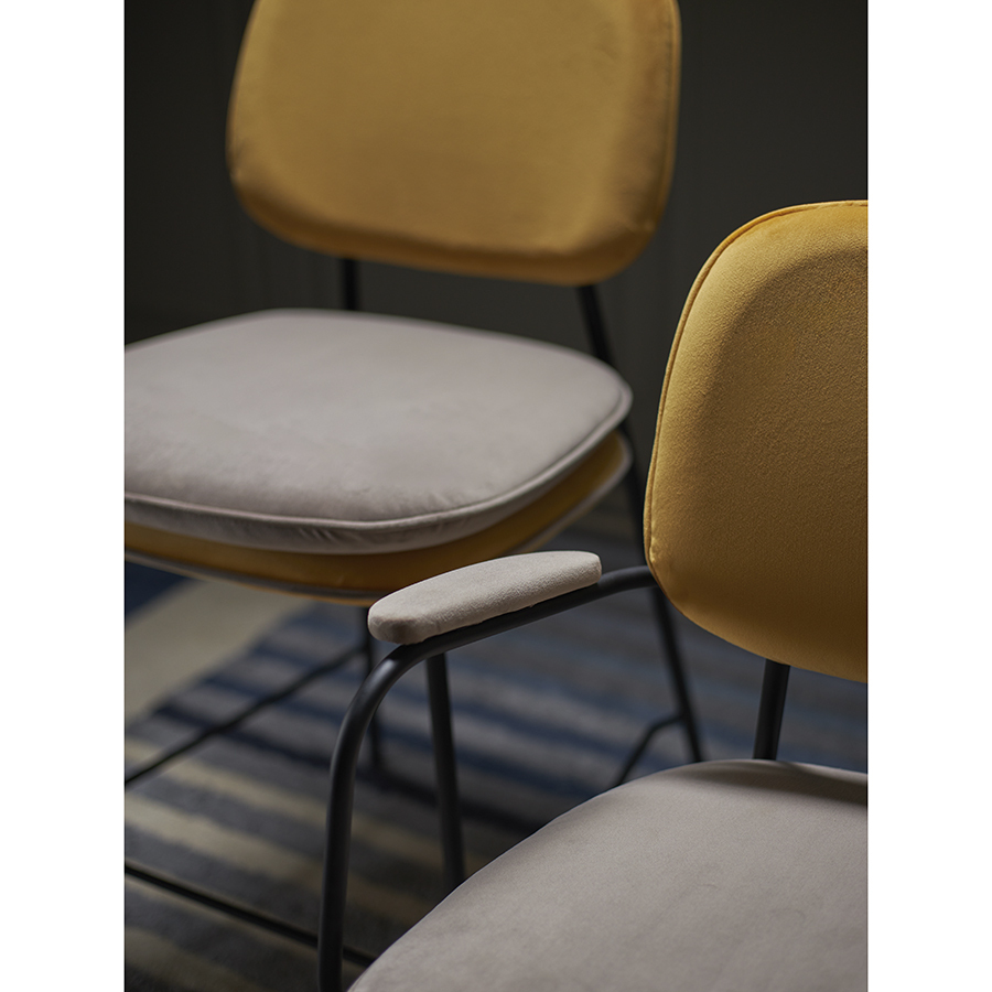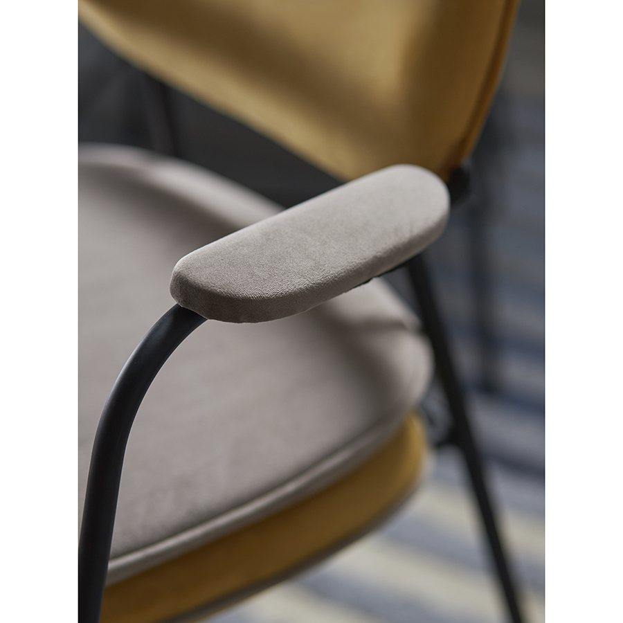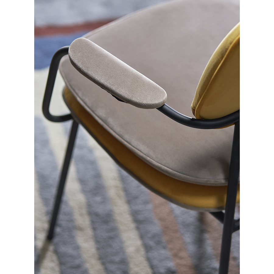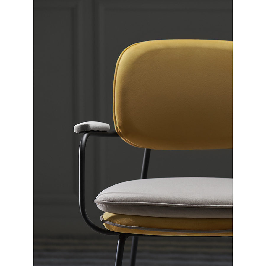 Стул Pea с подлокотниками, контрастным кантом и мягкой обивкой из бархатистого велюра станет настоящим украшением интерьера и идеальным выбором для ценителей качественной и элегантной мебели.