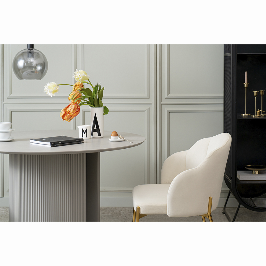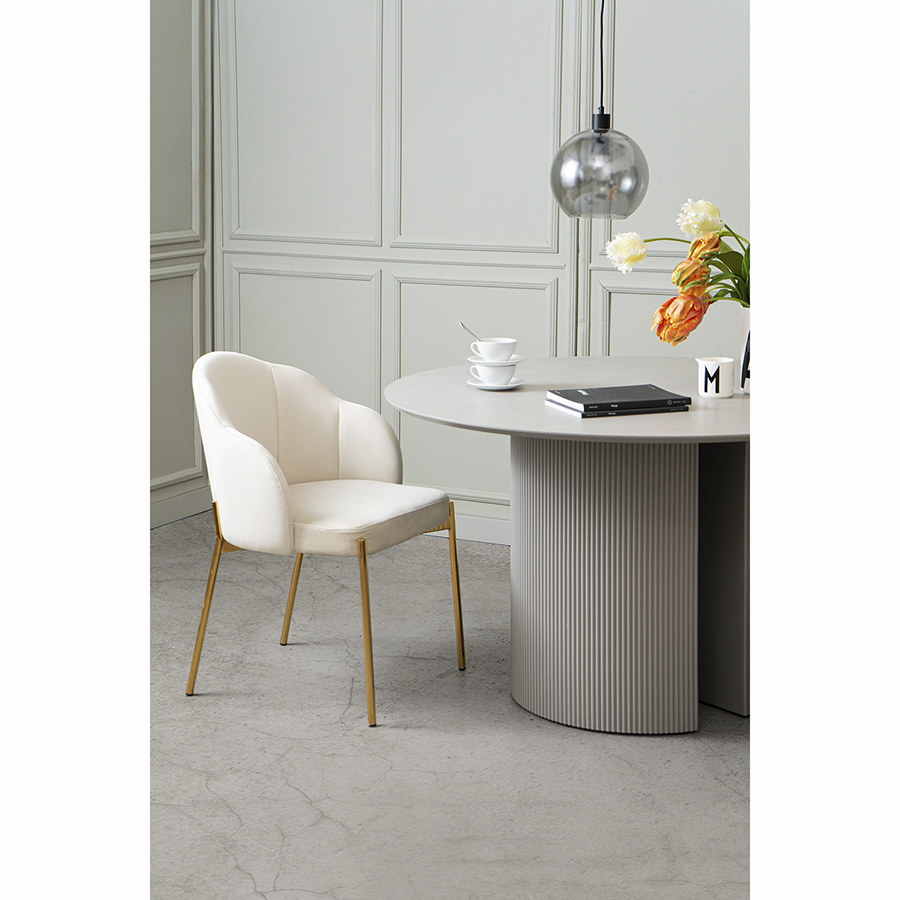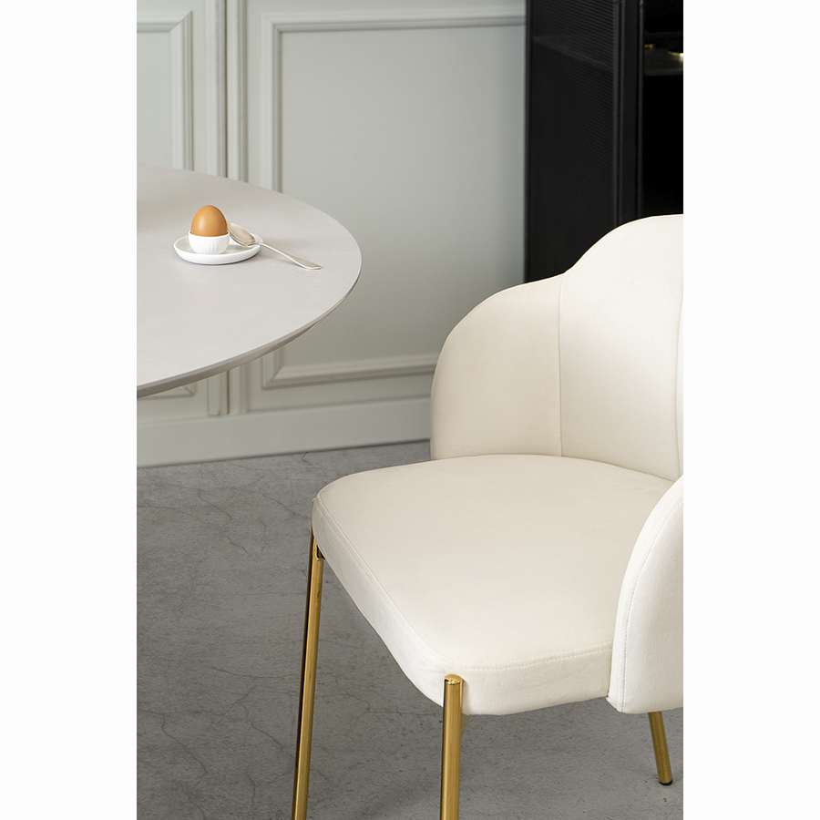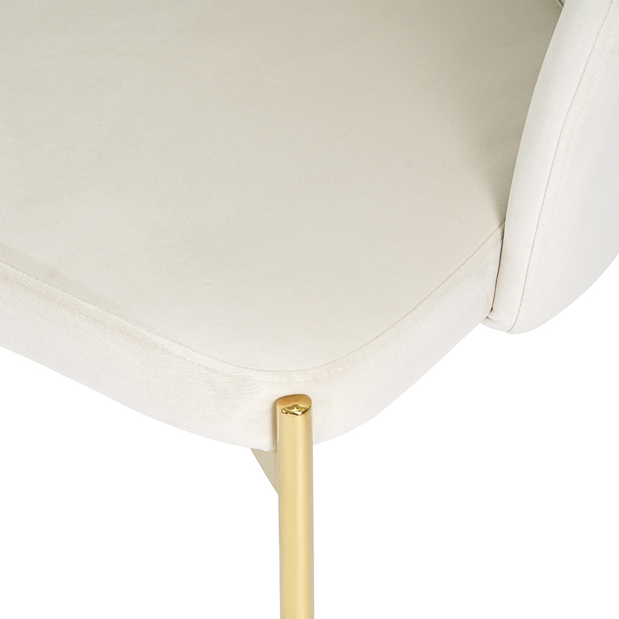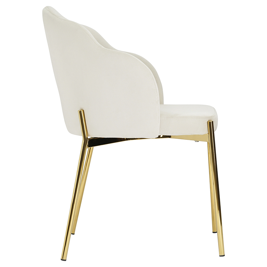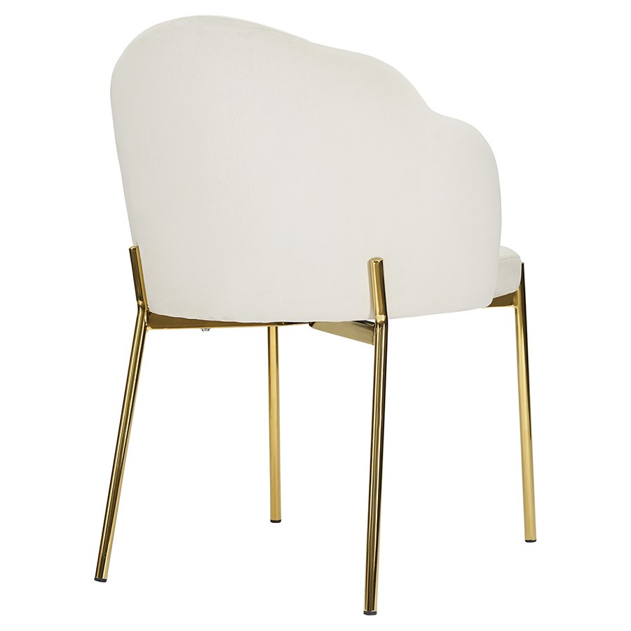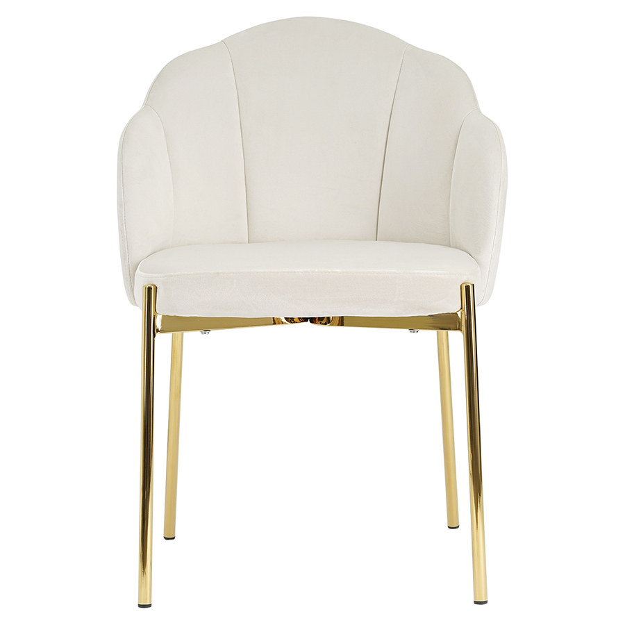 Необычная форма спинки, ножки с золотистым покрытием и обивка из бархатистого велюра обеспечивают модели красивый и изысканный вид. Ткань дарит приятные тактильные ощущения, при этом обладает высокой плотностью и износостойкостью. Поролоновый наполнитель делает стул мягким, а ножки из стали гарантируют конструкции надежность и устойчивость. Максимальный комфорт при сидении достигается за счет сплошной спинки с небольшим наклоном.