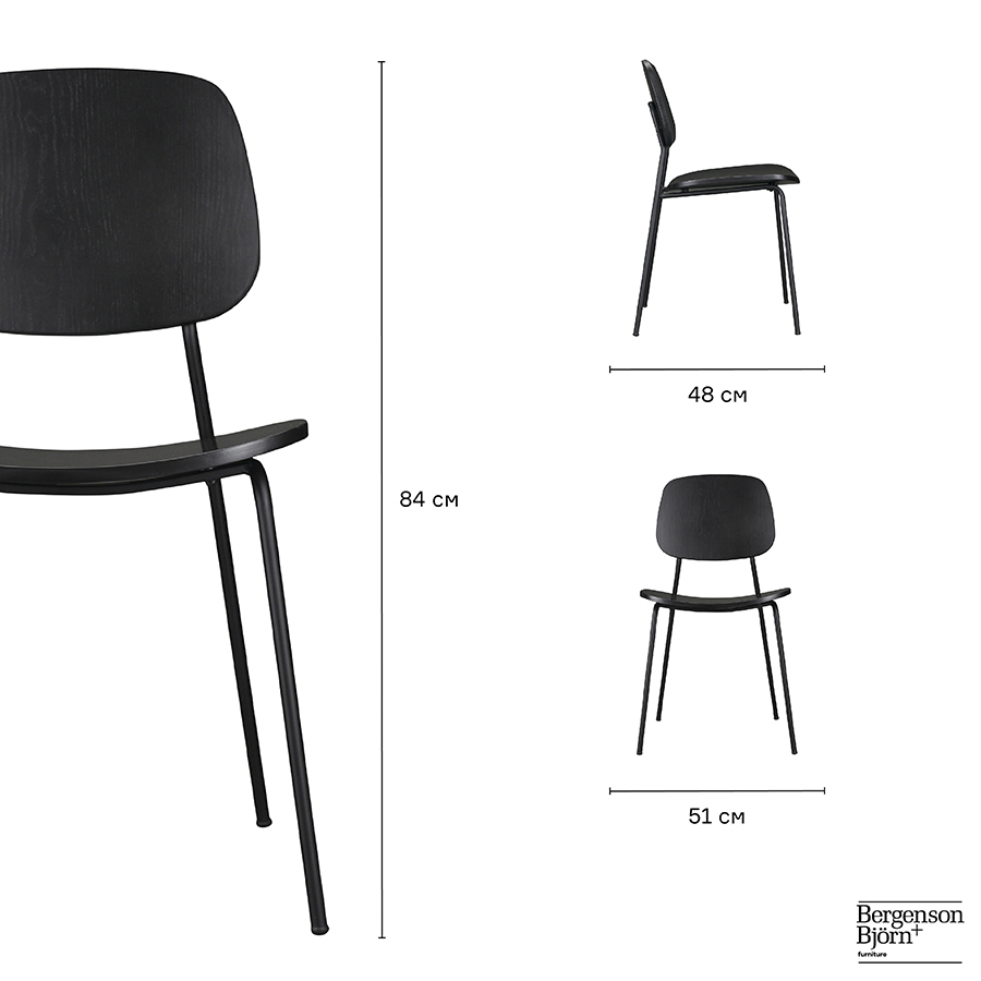 Материалы: фанера, железо. Размеры: 48x51x84 см. Высота сиденья: 45 см. Ширина сиденья: 45 см. Глубина сиденья: 40 см. Высота спинки: 41 см. Ширина спинки: 35 см. Цвет: черный.