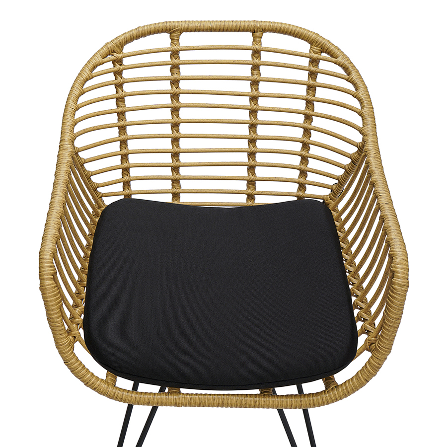 Материал: искусственный ротанг, сталь, полиэстер, пенополиуретан. Размеры: 56х57х81 см. Высота сиденья: 44 см. Высота подушки: 4 см.