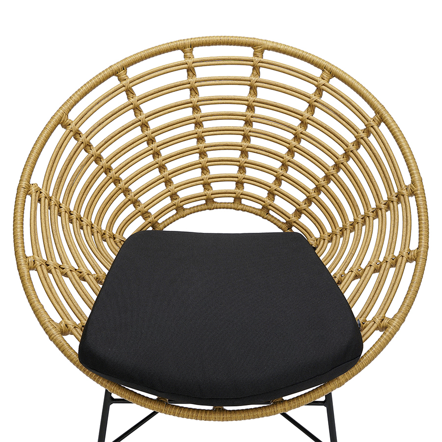 Материал: искусственный ротанг, сталь, полиэстер, пенополиуретан. Размеры: 71х61х77 см. Высота сиденья: 43 см. Высота подушки: 4 см.