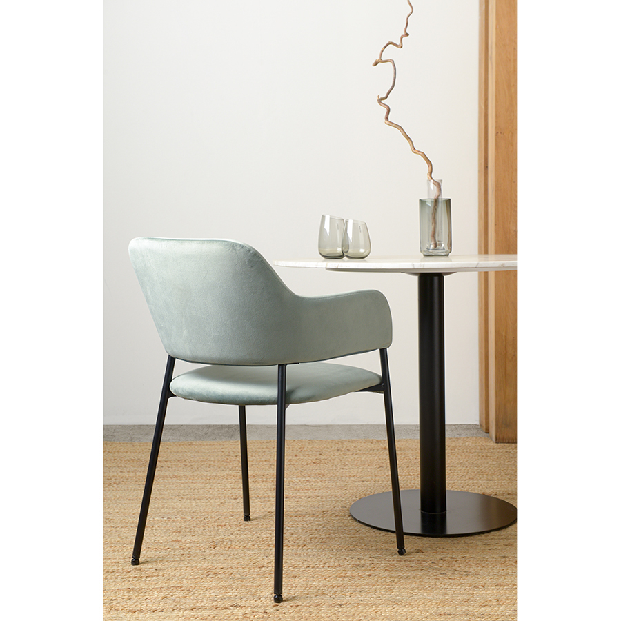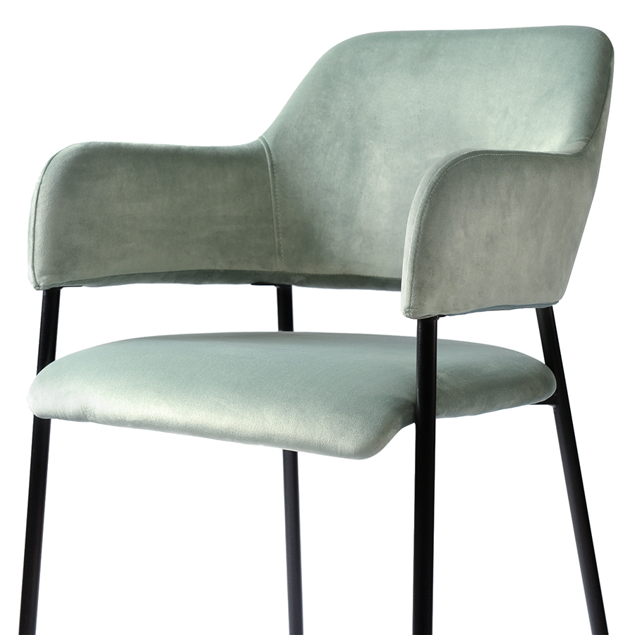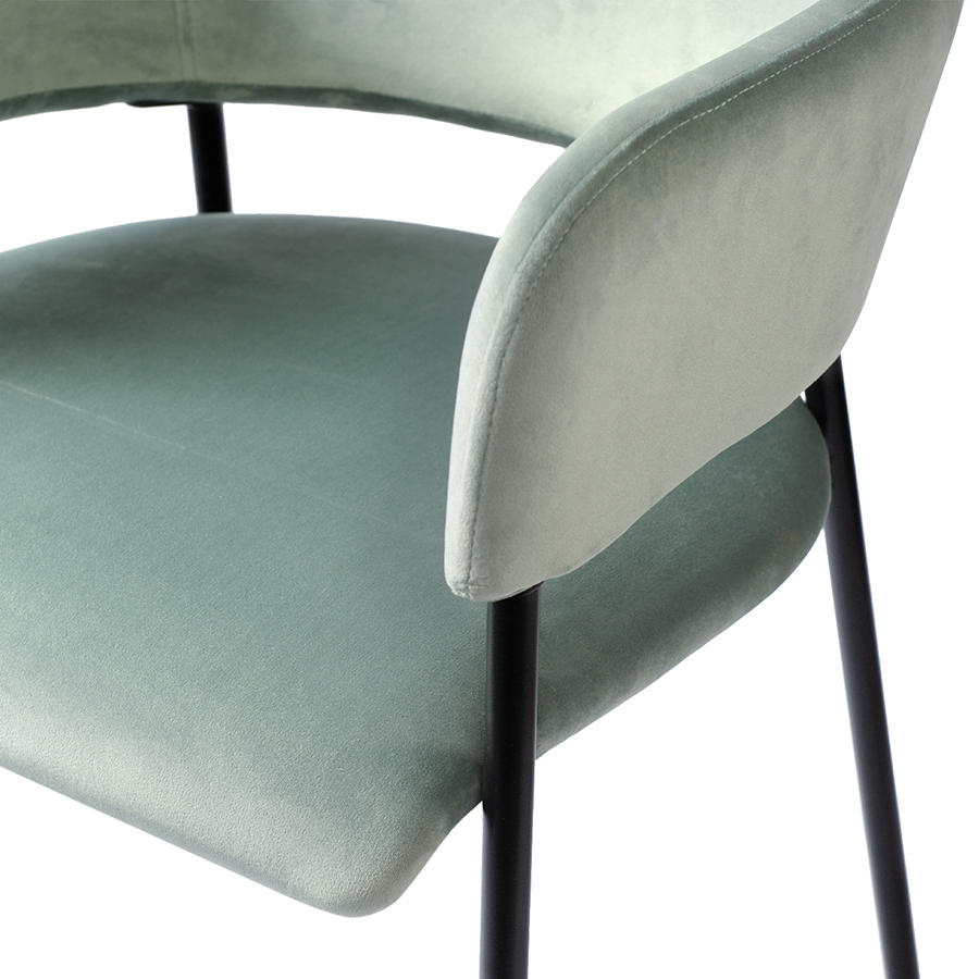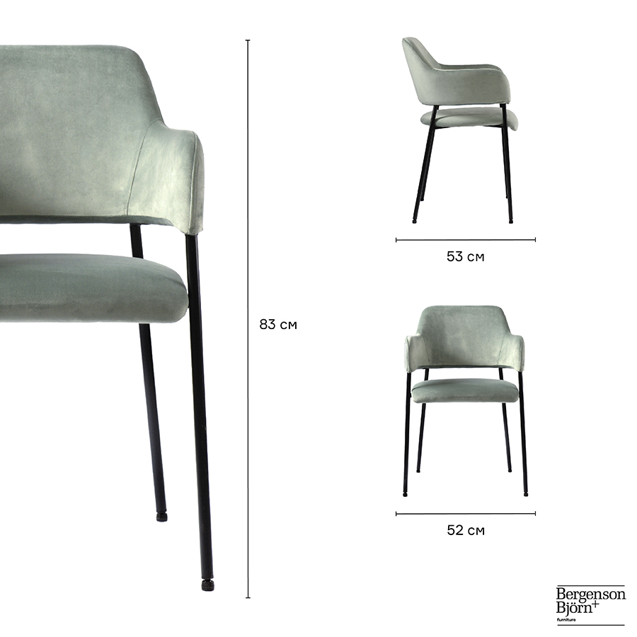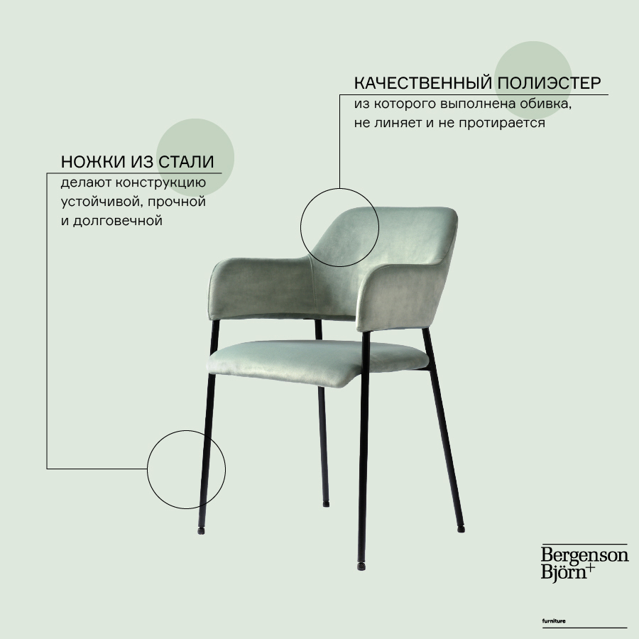 Модель имеет устойчивые ножки из прочной стали. Обивка из велюра придает мебели изысканный вид. Материал мягкий, приятный к телу, несложный в уходе. Комфорт при сидении достигается за счет глубокой посадки и высокой спинки, плавно переходящей в подлокотники. Стул выполнен в спокойной цветовой гамме, что позволяет вписать его в различные варианты оформления помещения.