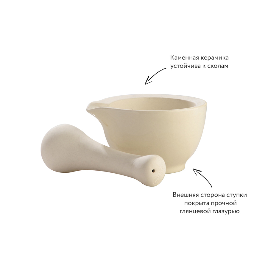 Ступка и пестик Mason&Cash станут надежным помощником для современной хозяйки. Изысканный дизайн посуды привлекает внимание с первого взгляда: корпус выглядит эффектно и отличается практичностью и надежностью. Пестик отлично растирает и измельчает орехи, травы, пряности для приготовления заправок и соусов. Посуда выполнена из каменной керамики, стойкой к механическим воздействиям. Внешняя сторона ступки покрыта прочной глянцевой глазурью. Производитель рекомендует только ручное мытье.