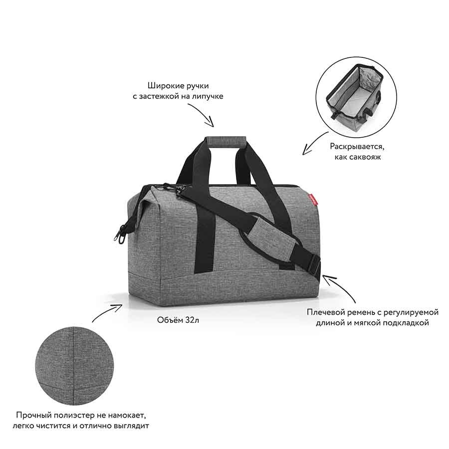 Allrounder L – практичная и вместительная сумка для спорта и путешествий. Форма аксессуара напоминает старинные врачебные саквояжи.