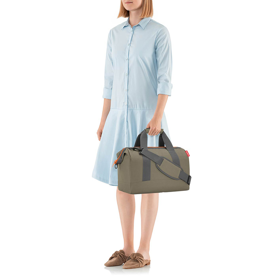Сумка Allrounder М сдержанного оливкового цвета – отличный вариант для тренировок или путешествий.