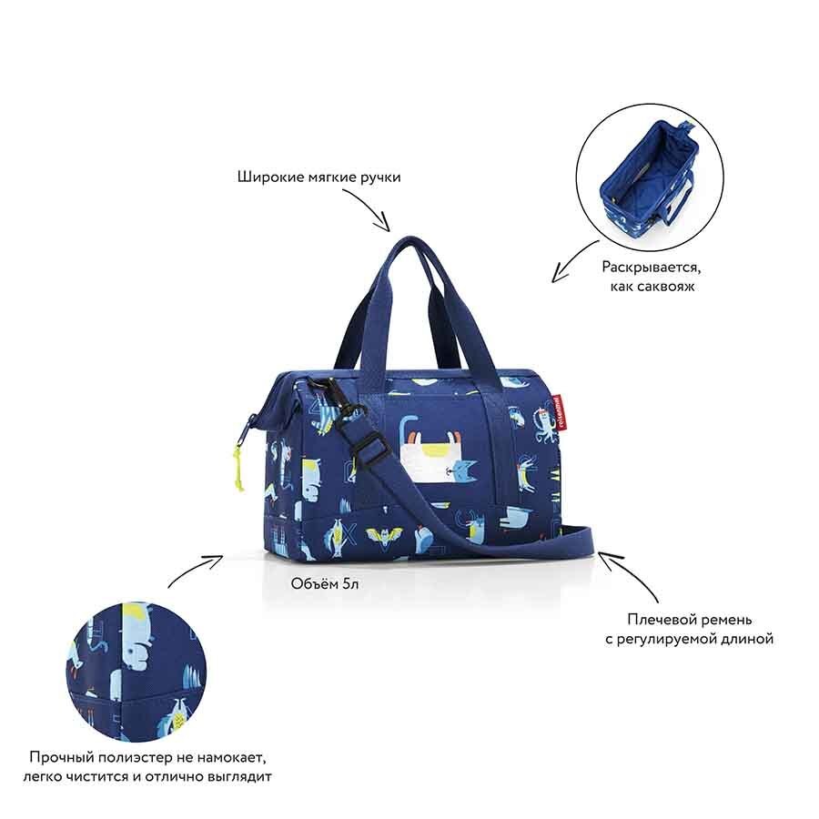 Сумка детская Allrounder XS ABC friends – практичный аксессуар для спорта и путешествий на каникулах. Объемные стенки и дно создают необычный силуэт. Встроенные металлические скобы фиксируют изделие в открытом положении: можно легко доставать и складывать вещи внутрь, а также быстро находить нужный предмет. Три внутренних карманов предоставляют возможность организовать пространство и сортировать содержимое сумки. Две ручки для переноски и ремень регулируемой длины позволяют носить аксессуар так, как вам удобно: в руках или на плече. Материал – высококачественный полиэстер – не намокает, легко чистится и прекрасно выглядит.