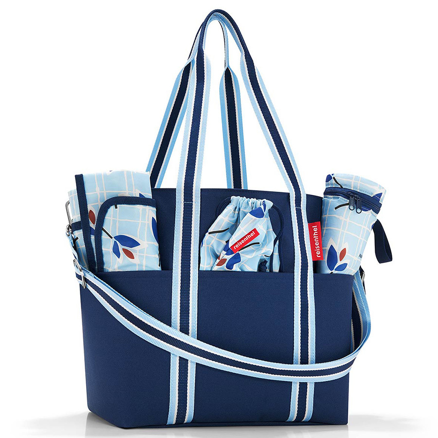 Сумка оборудована двумя удобным ручками и ремнем для ношения через плечо. Внутри мягкий коврик для пеленания, мешочек для белья, держатель для бутылок с застежкой-липучкой. Есть четыре наружных и шесть внутренних карманов. Материал – прочный водоотталкивающий полиэстер из переработанного пластика. Объем: 15 л.