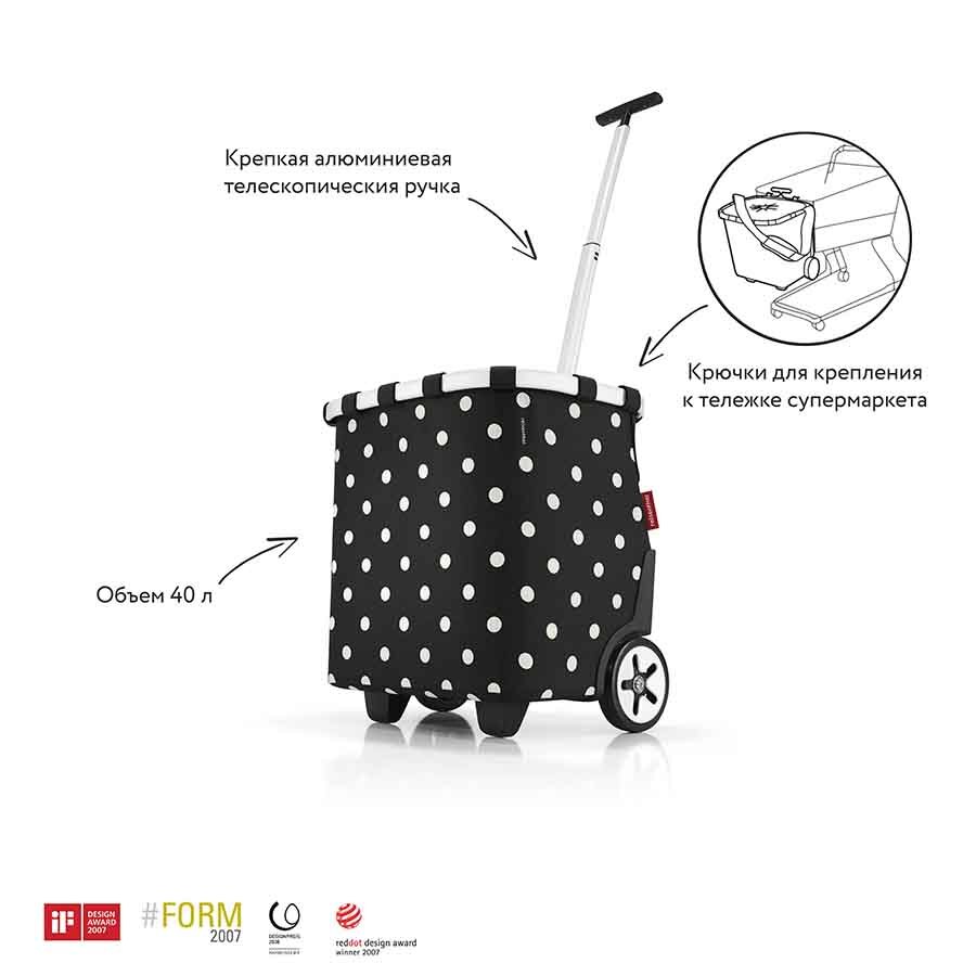 Прочная и стабильная алюминиевая рама устойчива к механическому воздействию. Съемный внутренний мешочек снимается для стирки. Удобная телескопическая ручка и широкий ремень с регулируемой длиной обеспечивают комфортную транспортировку. Сумка легко крепится к корзине-тележке в супермаркете и запросто помещается в багажник автомобиля. Высококачественный водоотталкивающий полиэстер легко чистится и прекрасно выглядит. Объем – 40 литров. Максимальная нагрузка – 20 кг.