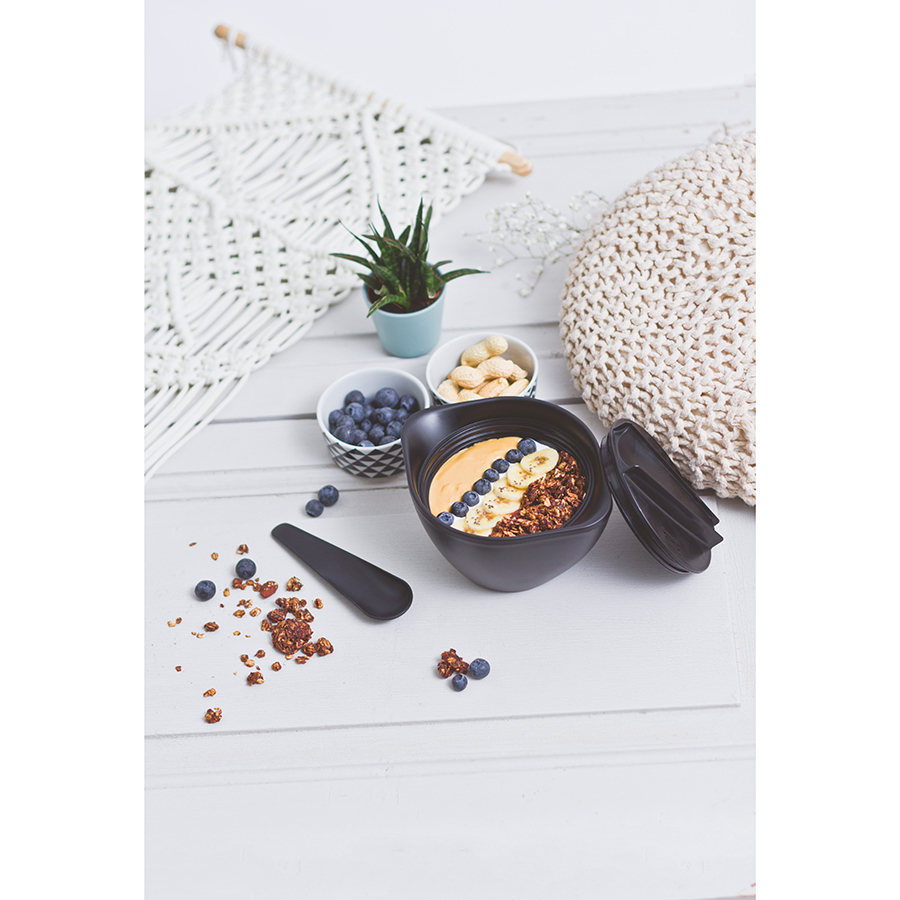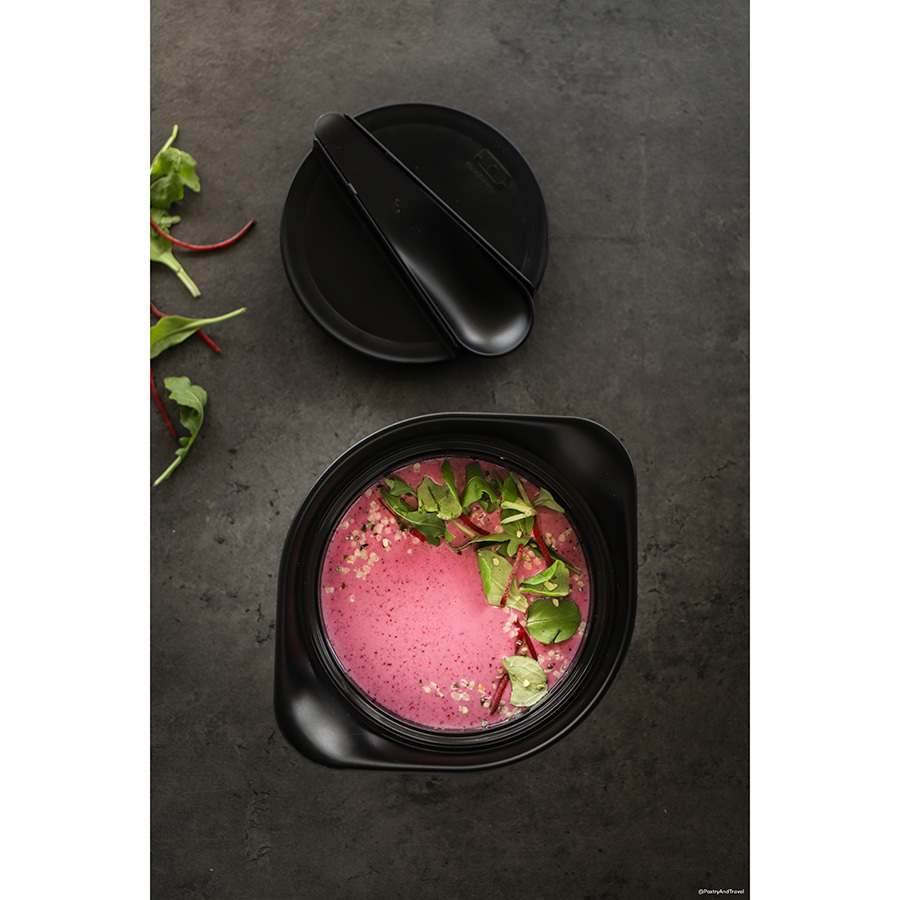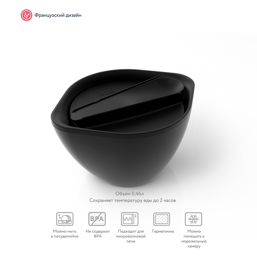 Ложки в руки! Теперь супы и свежие салаты брать с собой на работу и на пикник проще простого. И даже дома есть хлопья и пюре вкуснее из красивой ёмкости от Monbento. Вакуумная крышка плотно прилегает к основе, не позволяя даже капле просочиться наружу. А специальный дизайн супницы и двойные стенки позволяют без проблем держать ее в руках, даже если внутри ооочень горячая еда. В комплекте идет ложка, которая аккуратно и надежно закрепляется на крышке супницы. Объем - 450 мл. Изготовлена из безопасного пищевого пластика без вредного бисфенола-А (BPA free). Можно мыть в посудомоечной машине, ставить в холодильник и греть в микроволновой печи без крышки и ложки.