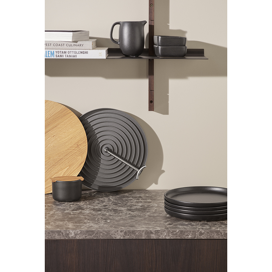 Стильная и практичная сушилка для посуды позволит обойтись без надоевших кухонных полотенец и предотвратит скапливание влаги на столешницах. В круглый поддон собираются излишки воды, которую можно легко слить в раковину. Сушилка вмещает четыре комплекта посуды: чашки и стаканы хранятся перевернутыми вверх дном, а тарелки опираются на стойку из нержавеющей стали. За счет складывающегося центрального стержня аксессуар легко и удобно хранить после использования.