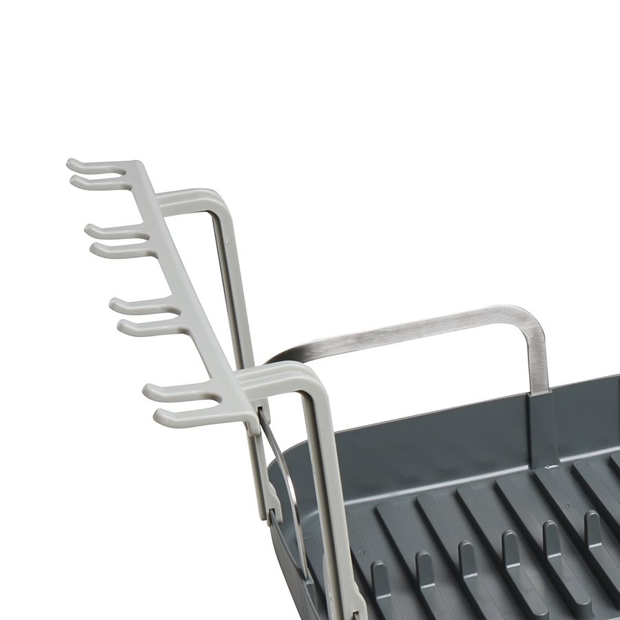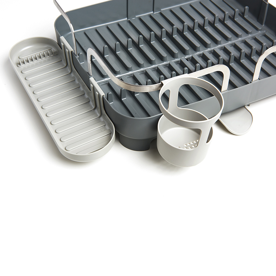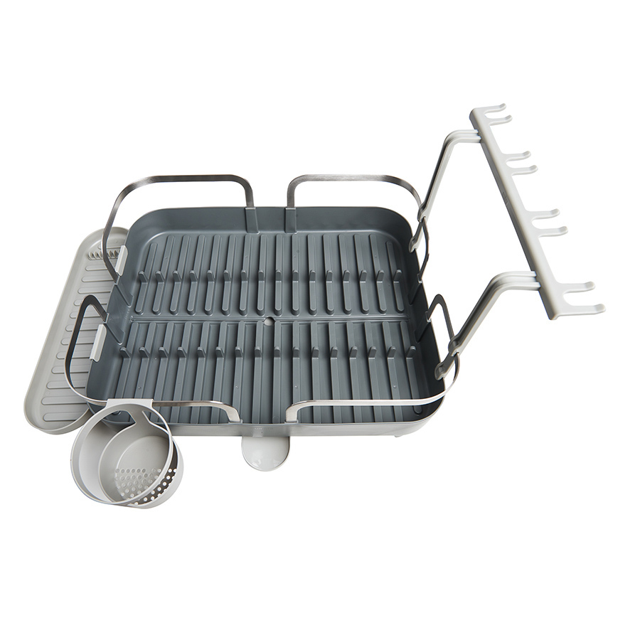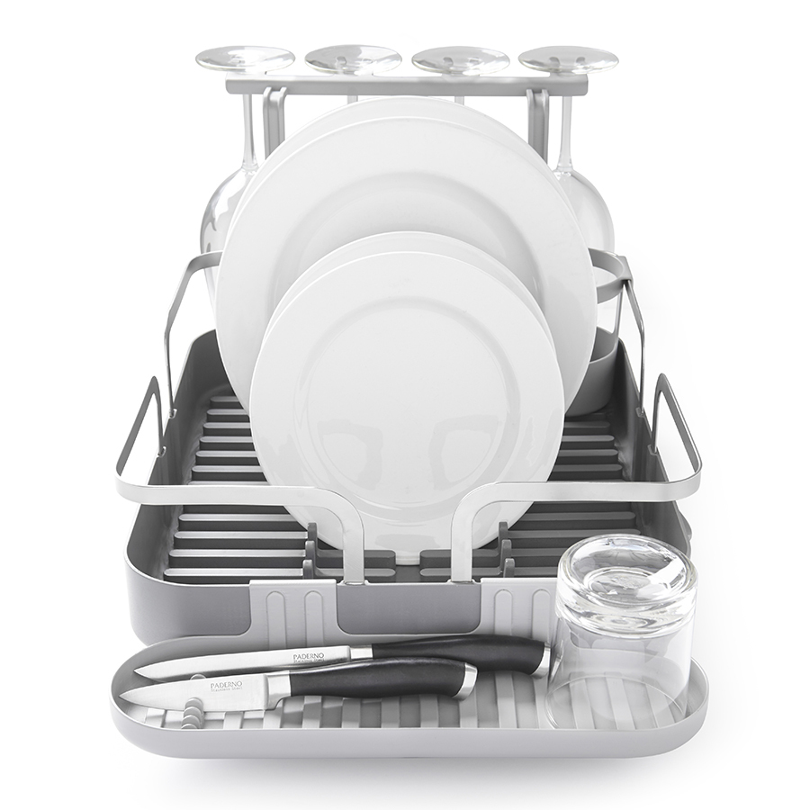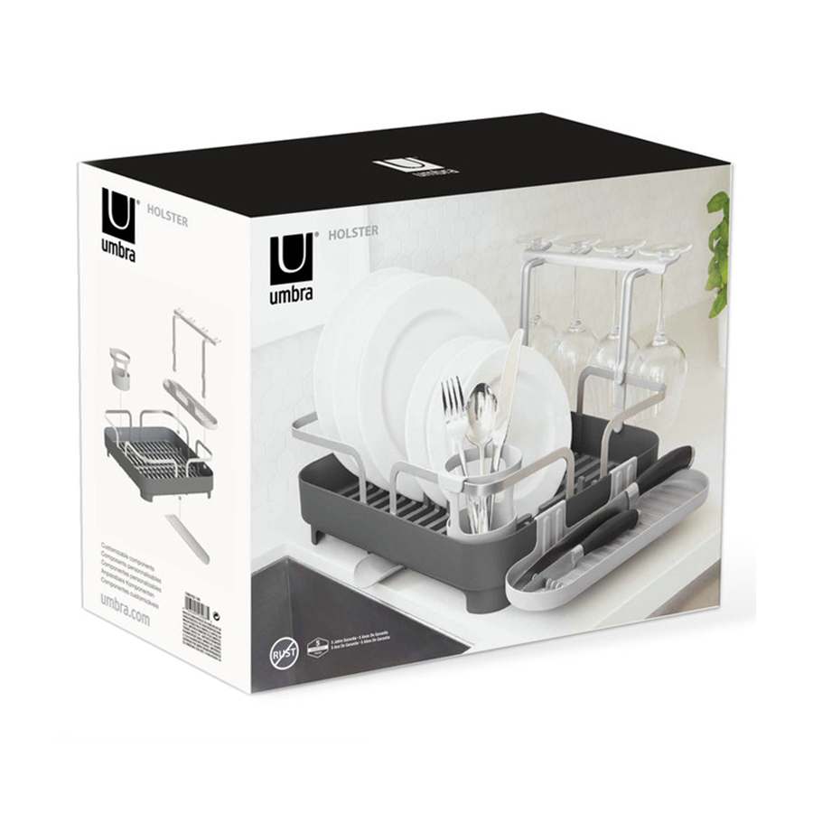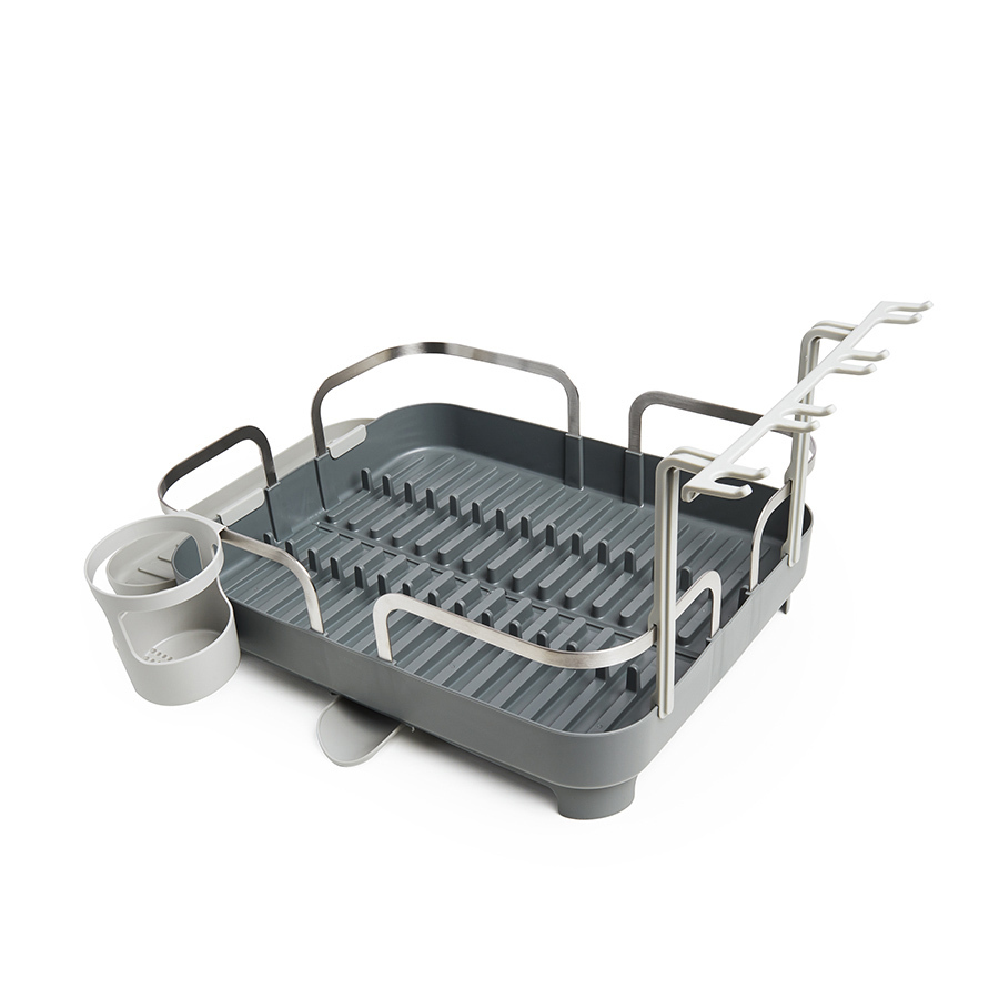 Целый сушильный комплекс на вашей кухне! Многофункциональная сушилка для посуды, состоящая из стальной рамы и пластикового поддона. Решётка поддона рассчитана на сушку 15 тарелок. Кроме того, предусмотрено несколько съемных частей, которые можно конфигурировать так, как удобно вам: стакан для сушки столовых приборов, специальная рама для сушки винных бокалов и узкий боковой отсек c делениями для сушки ножей. Все эти части можно навешивать как внутри, так и снаружи сушилки. Снизу боковой части сушилки предусмотрен слив, который не даст воде застаиваться. Дизайнер David Green