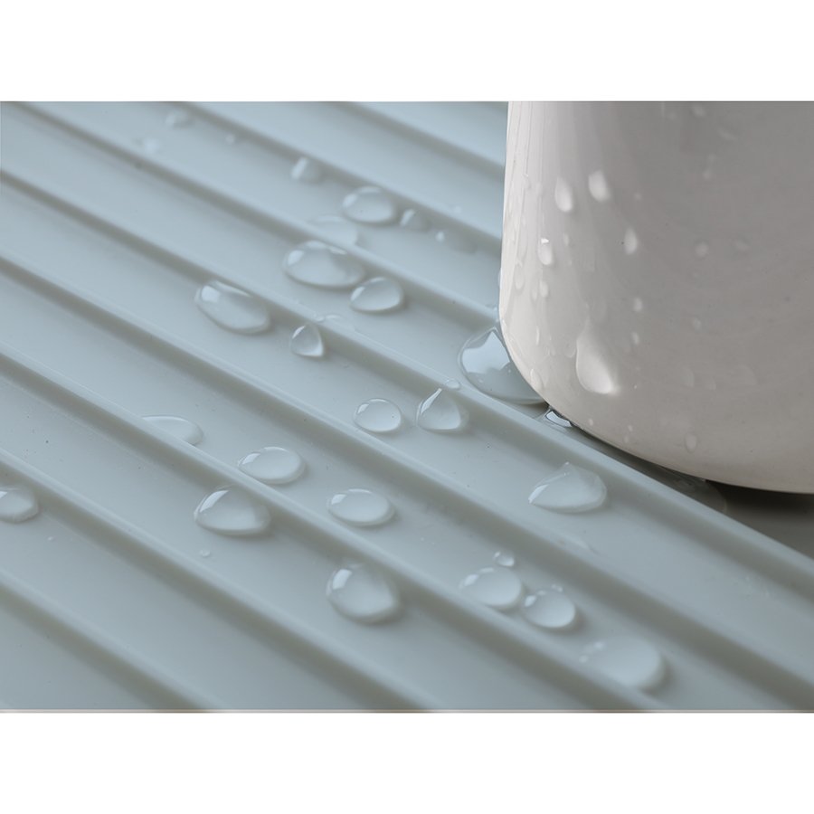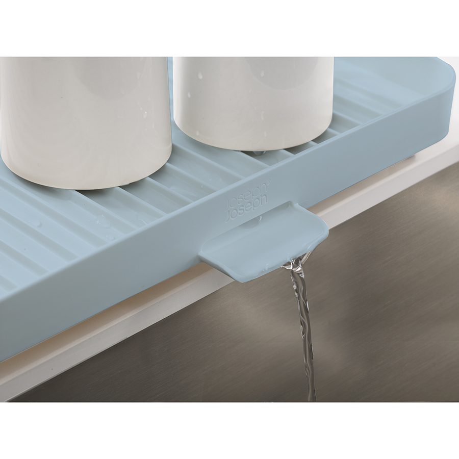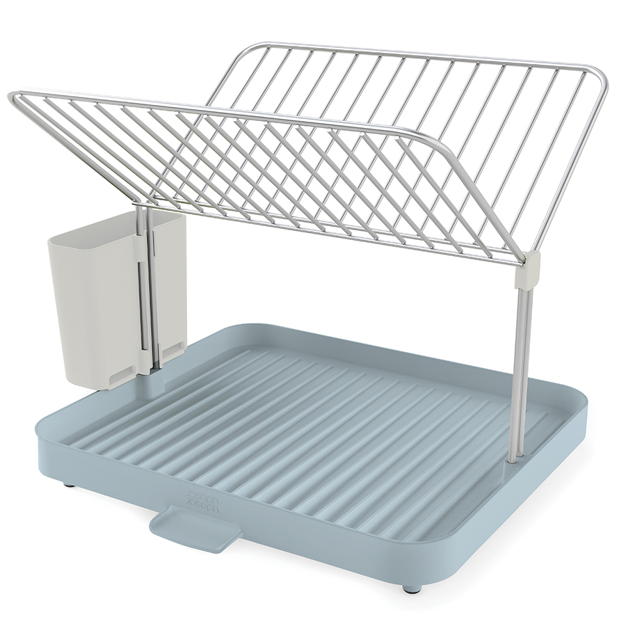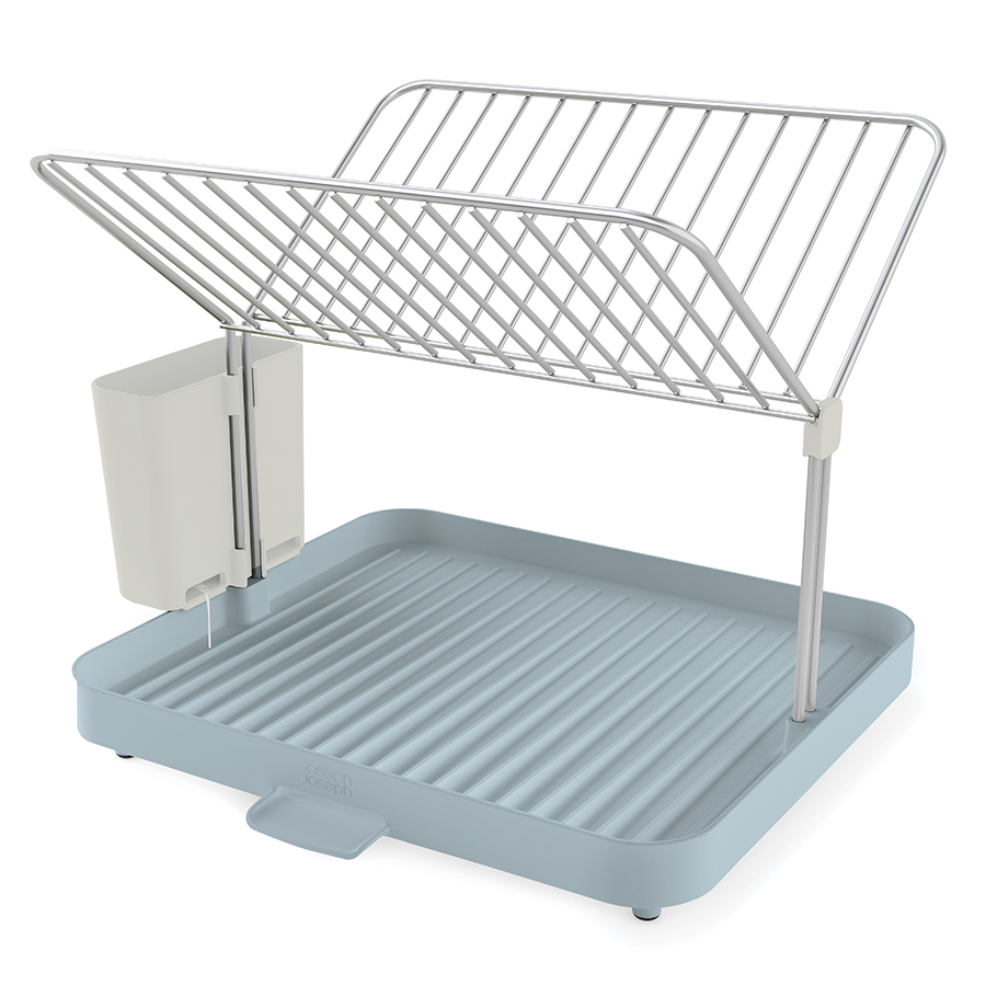 Двухуровневая конструкция состоит из устойчивого основания для кастрюль, сковородок и чашек и из верхней решетки, вмещающей до 15 тарелок и блюдец. Объемное отделение со сливом предоставляет возможность тщательно осушить до 4 комплектов посуды — и все это на минимальном участке пространства. Вода свободно стекает по желобкам, расположенным у основания под наклоном, а встроенный носик позволяет быстро сливать жидкость прямо в раковину. Нескользящие ножки обеспечивают устойчивость. Конструкция разбирается на части для легкой очистки. Инструкции по сборке идут в комплекте.