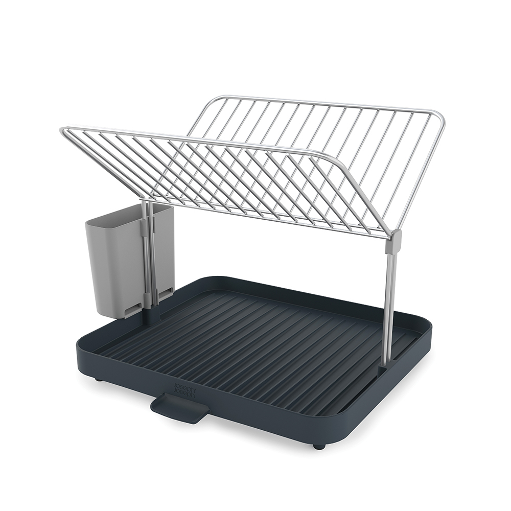 Двухуровневая конструкция состоит из устойчивого основания для кастрюль, сковородок и чашек и из верхней решетки, вмещающей до 15 тарелок и блюдец. Объемное отделение со сливом предоставляет возможность тщательно осушить до 4 комплектов посуды — и все это на минимальном участке пространства. Вода свободно стекает по желобкам, расположенным у основания под наклоном, а встроенный носик позволяет быстро сливать жидкость прямо в раковину. Нескользящие ножки обеспечивают устойчивость. Конструкция разбирается на части для легкой очистки. Инструкции по сборке идут в комплекте.