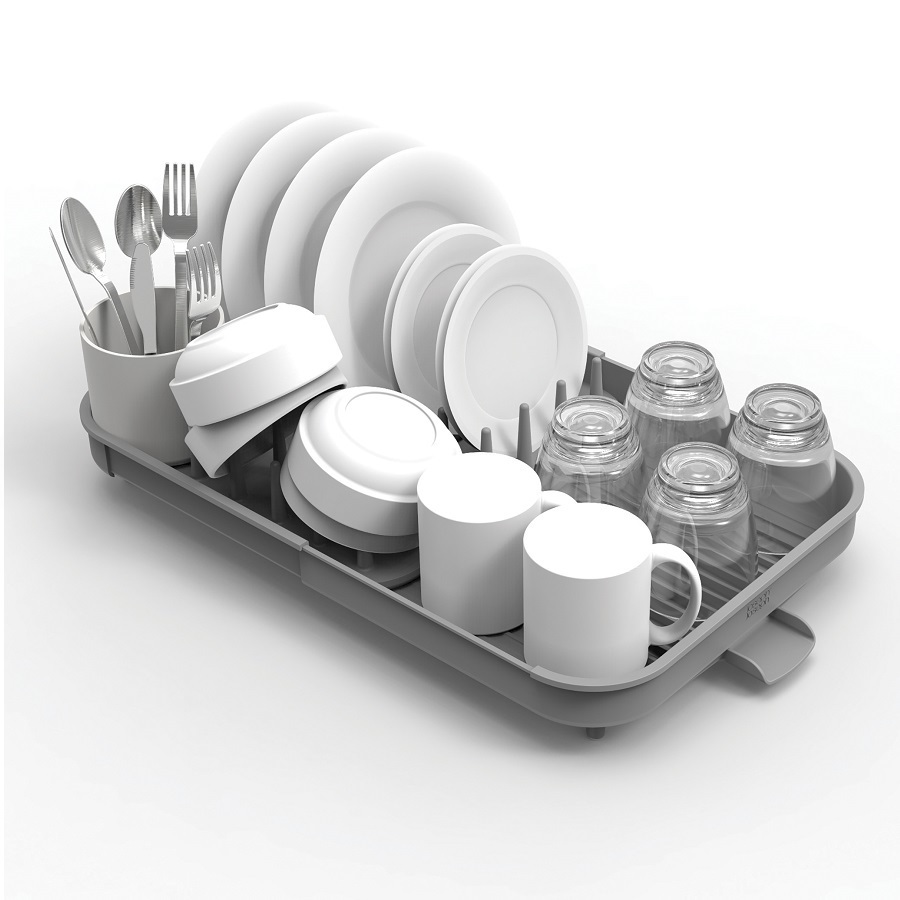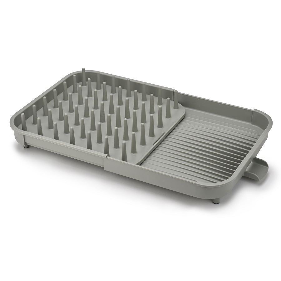 Сушилка раздвижная для посуды Duo с отделением для столовых приборов – отличное решение для кухни, которое поможет грамотно организовать пространство. Подставка имеет выдвижное основание и широкие зубцы, которые надежно фиксируют чашки, стаканы, глубокие тарелки. Наклонная поверхность для отвода лишней воды оборудована небольшим сливом, который можно направить непосредственно в мойку. Конструкция не занимает много места на кухне. Материал – полипропилен, размер – 33,7х36,8х15/33,5х57х15 см.