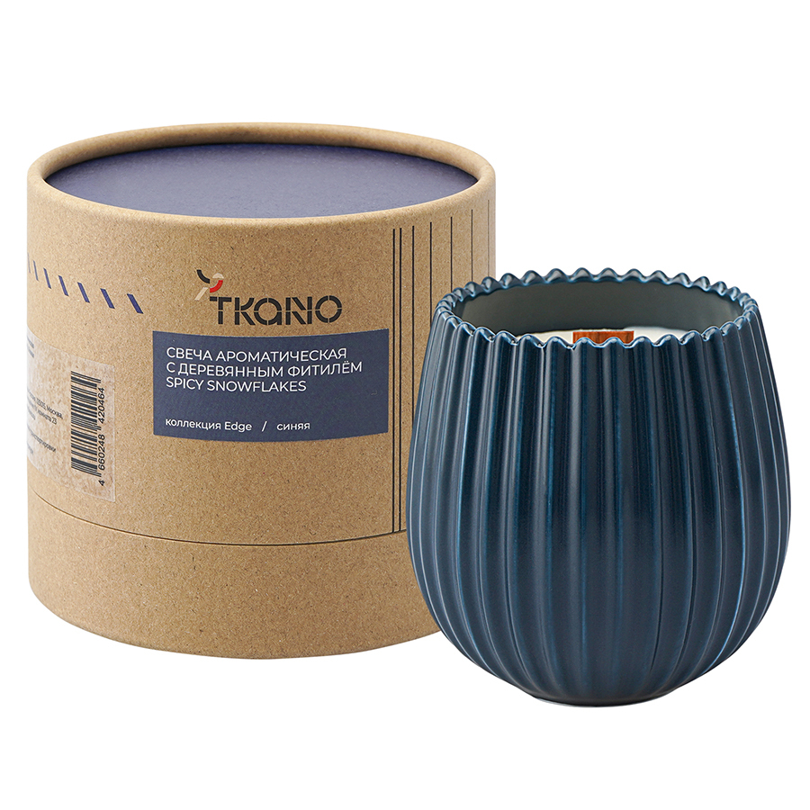 Свеча ароматическая с деревянным фитилем Spicy Snowflakes синего цвета из коллекции Edge с дизайном, вдохновленным русскими традициями, отлично подойдет для домашнего декора и создания в интерьере уютной, расслабляющей атмосферы. Фактурные грани и округлая поверхность фарфорового стакана отсылают нас к образу купола – символу духовного подъема и стремления к совершенству. Экологичные материалы, такие как соевый, кокосовый воск и фитиль из натурального дерева делают свечу безопасной для здоровья и окружающей среды. При горении она не выделяет вредных соединений и не коптит. Однако, во избежание перегрева стакана, рекомендуем не зажигать ее более, чем на 4 часа.