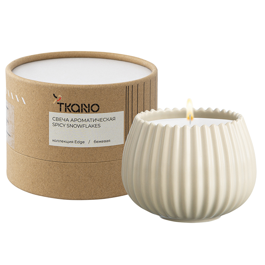 Свеча ароматическая Spicy Snowflakes бежевого цвета из коллекции Edge с дизайном, вдохновленным русскими традициями, отлично подойдет для домашнего декора и создания в интерьере уютной, расслабляющей атмосферы. Фактурные грани и округлая поверхность фарфорового стакана отсылают нас к образу купола – символу духовного подъема и стремления к совершенству. Экологичные материалы, такие как соевый, кокосовый воск и фитиль из натурального хлопка делают свечу безопасной для здоровья и окружающей среды. При горении она не выделяет вредных соединений и не коптит. Однако, во избежание перегрева стакана, рекомендуем не зажигать ее более, чем на 4 часа.