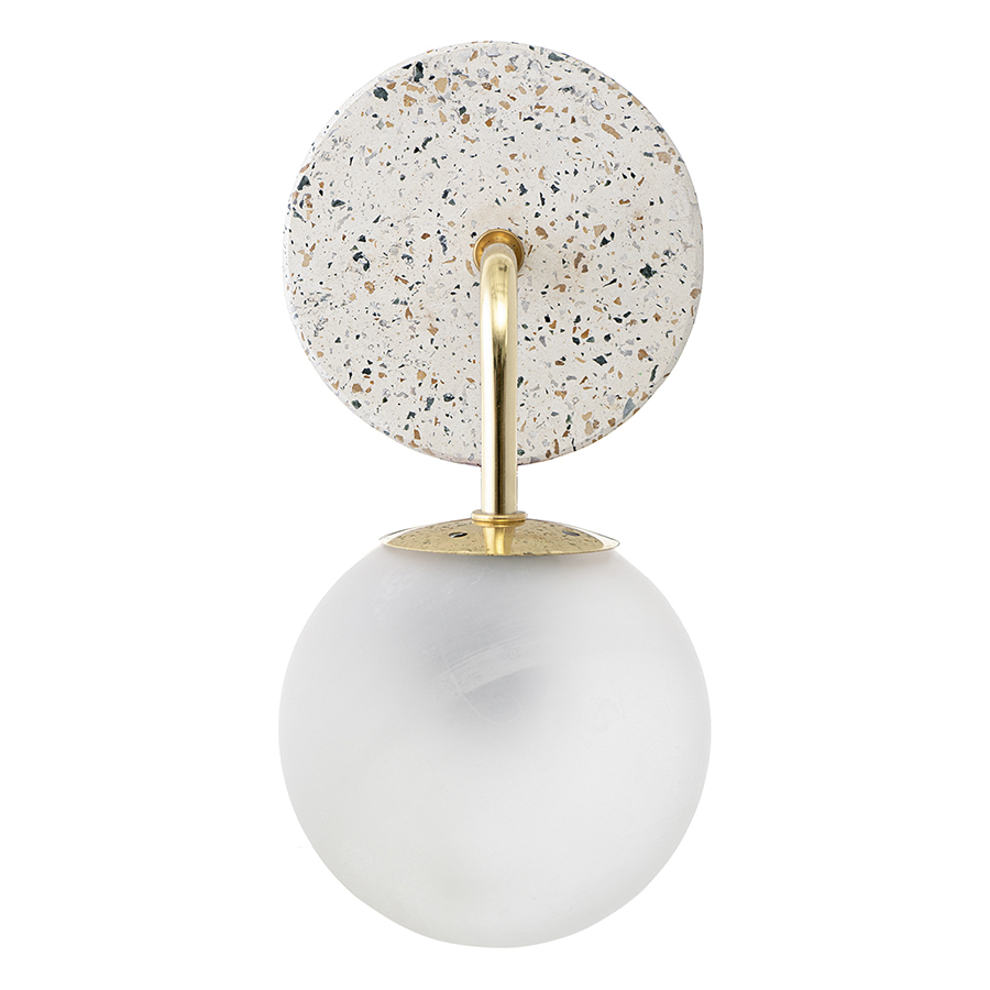 Материал: каменный композит терраццо, железо, стекло. Размеры: 32x15,5x22 см. Цвет: белый/золотой. Тип цоколя: Е27. Степень пылевлагозащиты: IP20. Максимальная мощность ламп: 25 Вт. Напряжение: 220-240 В. Площадь освещения: 1,7 кв.м. Лампы в комплекте: нет.