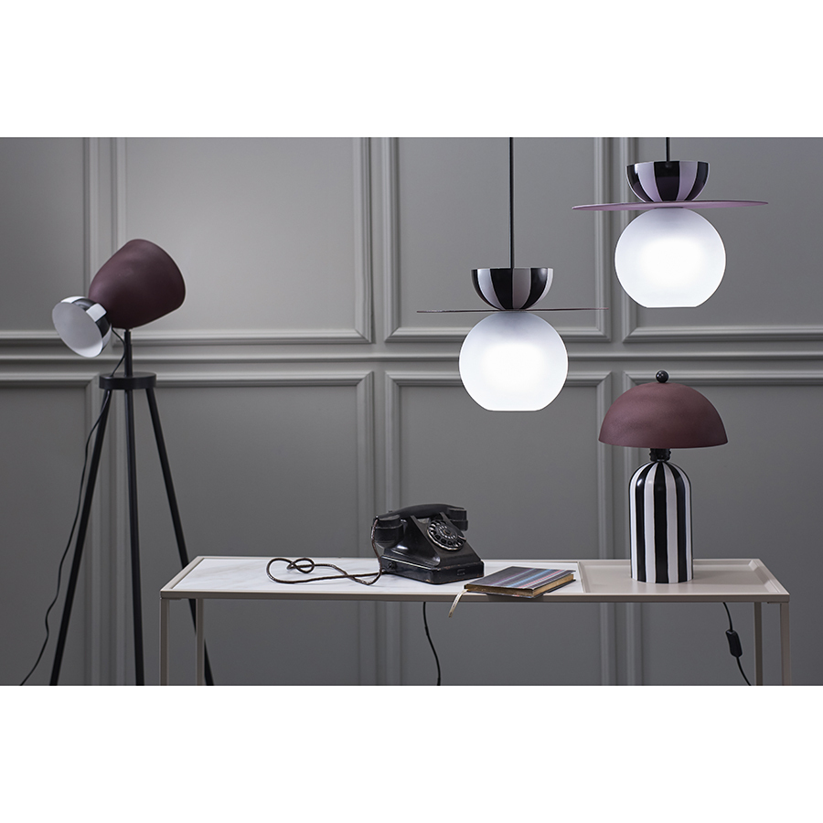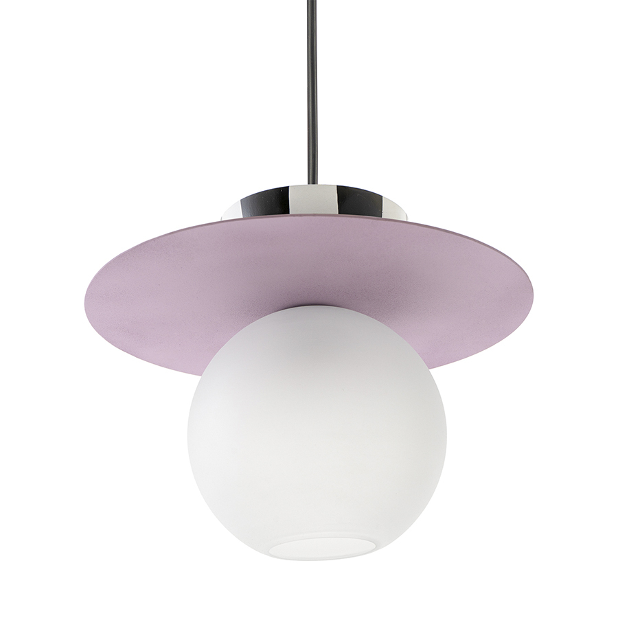 Материал: железо, алюминий, стекло. Размеры светильника: 36х36х28 см. Размеры основания: 10х10х2 см. Цвет: черный/белый/лиловый. Тип цоколя: Е27. Степень пылевлагозащиты: IP20. Максимальная мощность ламп: 25 Вт. Напряжение: 220-240 В. Длина подвеса: 50,8-127 см. Площадь освещения: 1,7 кв.м. Лампы в комплекте: нет.