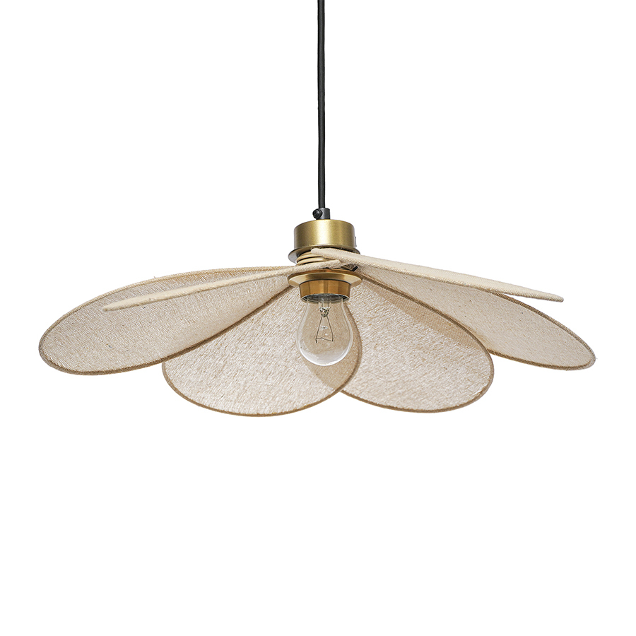 - Необычный плафон из джутовой ткани, напоминающий цветок.