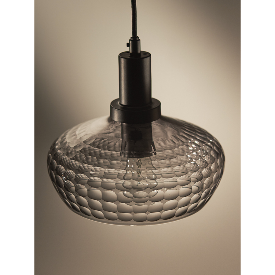 Светильник подвесной Mirage от дизайнерского бренда Bergenson Bjorn великолепно дополнит интерьер в современном стиле, поможет в создании приятного освещения и уютной атмосферы. Модель имеет основание из железа и плафон из стекла. Стенки плафона украшает выпуклый узор, который красиво преломляет свет, обеспечивая интересный визуальный эффект.
