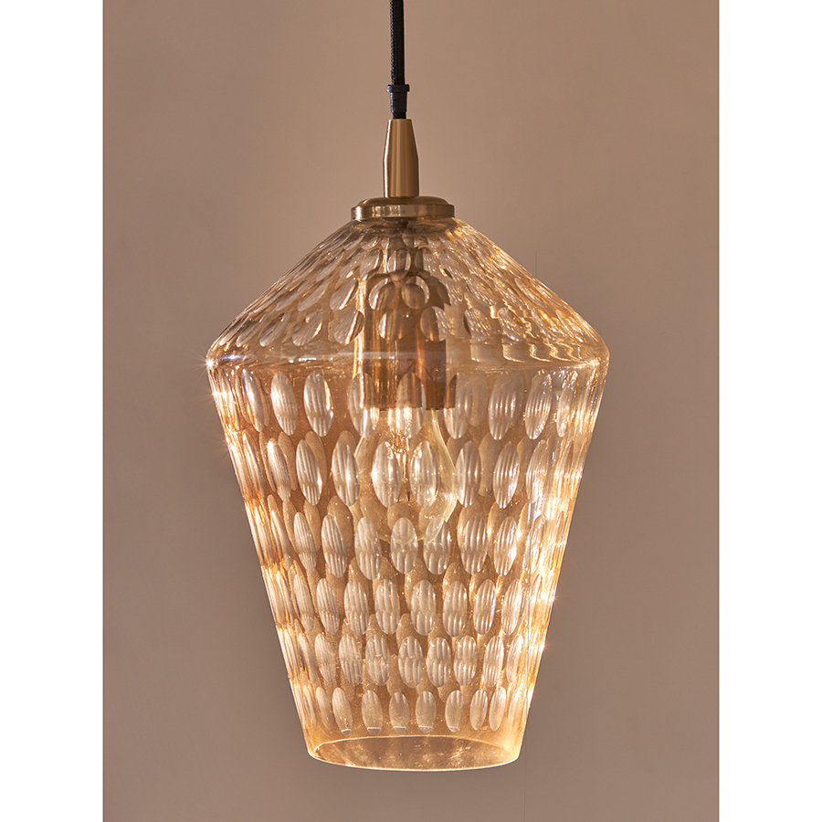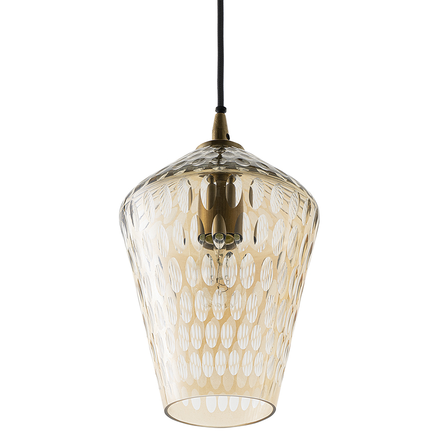 Материалы: стекло, железо. Размеры: 19х19х30 см. Цвет: янтарно-золотой. Длина провода: 1,5 м. Тип цоколя: Е27. Максимальная мощность ламп: 40 Вт. Степень пылевлагозащиты: IP20. Диаметр монтажной пластины: 11 см. Площадь освещения: 2,7 кв.м. Лампы в комплекте: нет.