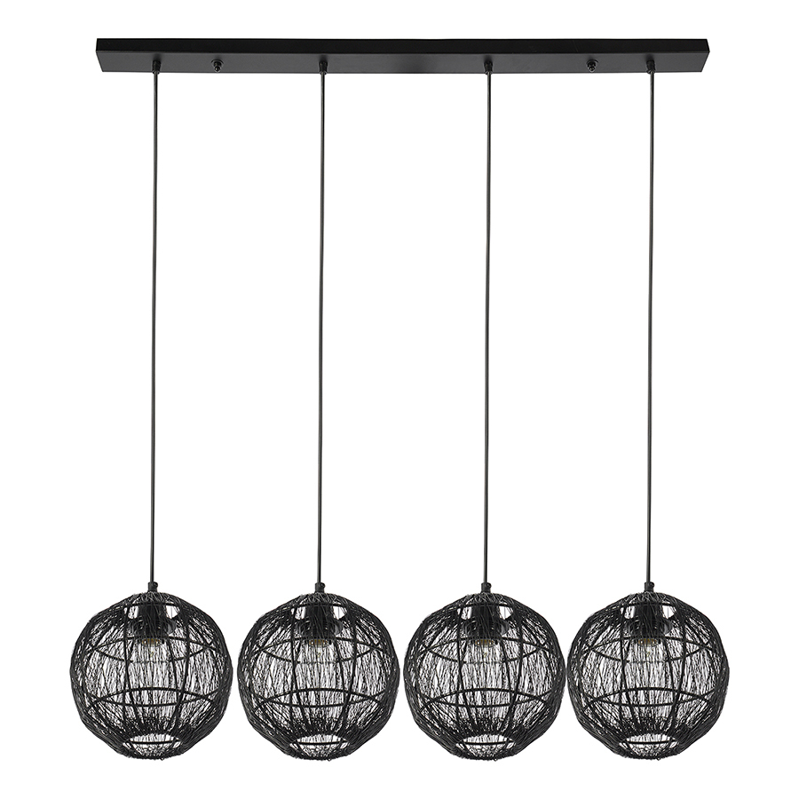 Материал: железо. Размеры: 130х20х110 см. Цвет: черный. Тип цоколя: 4хЕ27. Степень пылевлагозащиты: IP20. Максимальная мощность ламп: 4х25 Вт. Напряжение: 220-240 В. Площадь освещения: 6,7 кв.м. Длина провода: 109 см. Лампы в комплекте: нет.