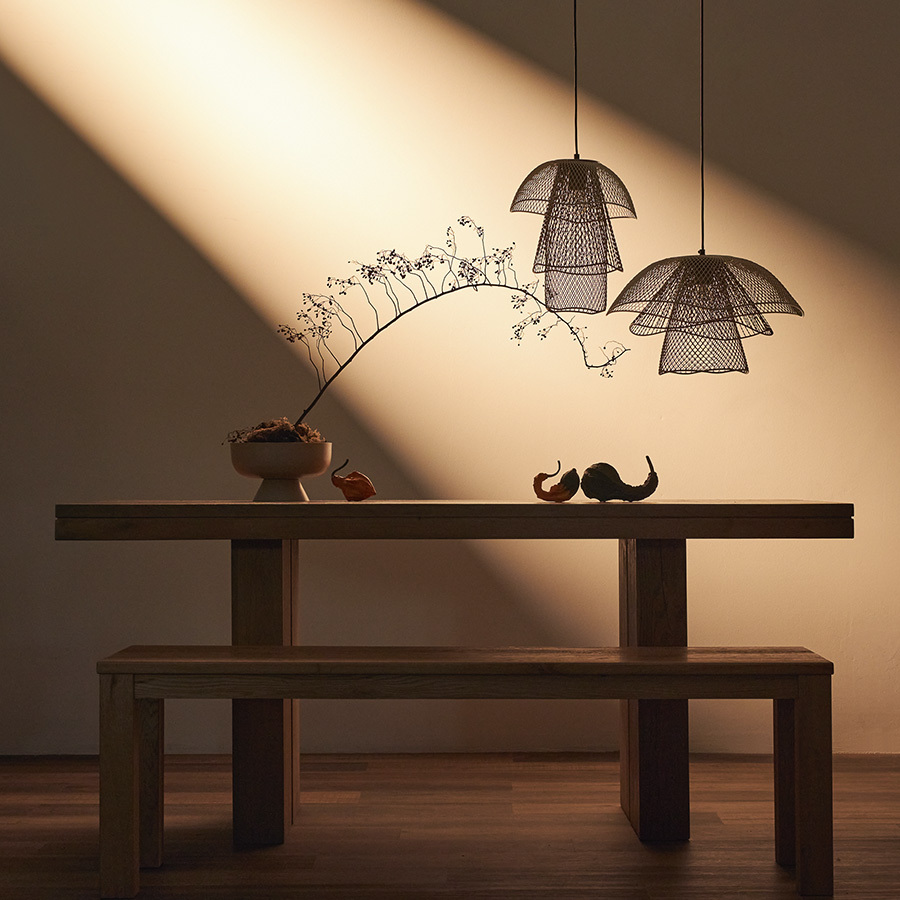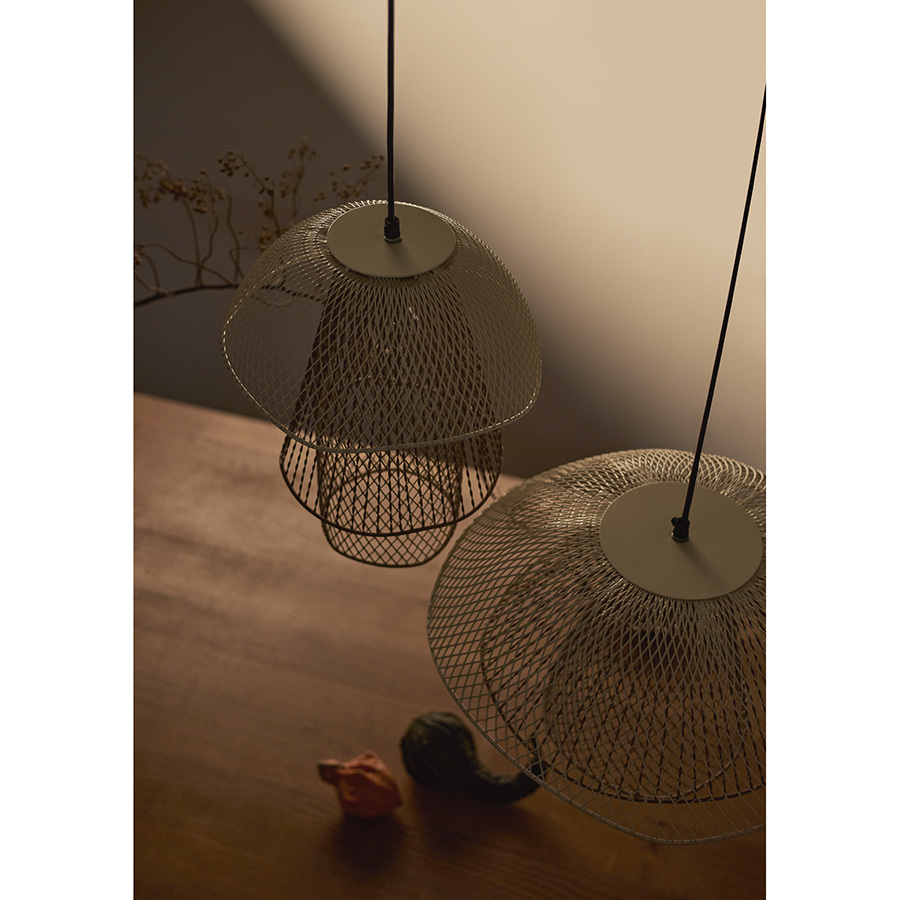 - Светильник с плафоном из железной сетки смотрится необычно и идеально подходит в качестве акцентного элемента.