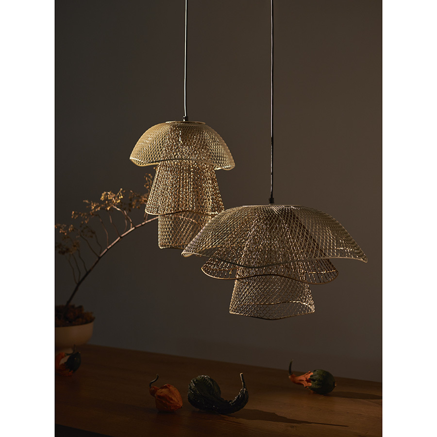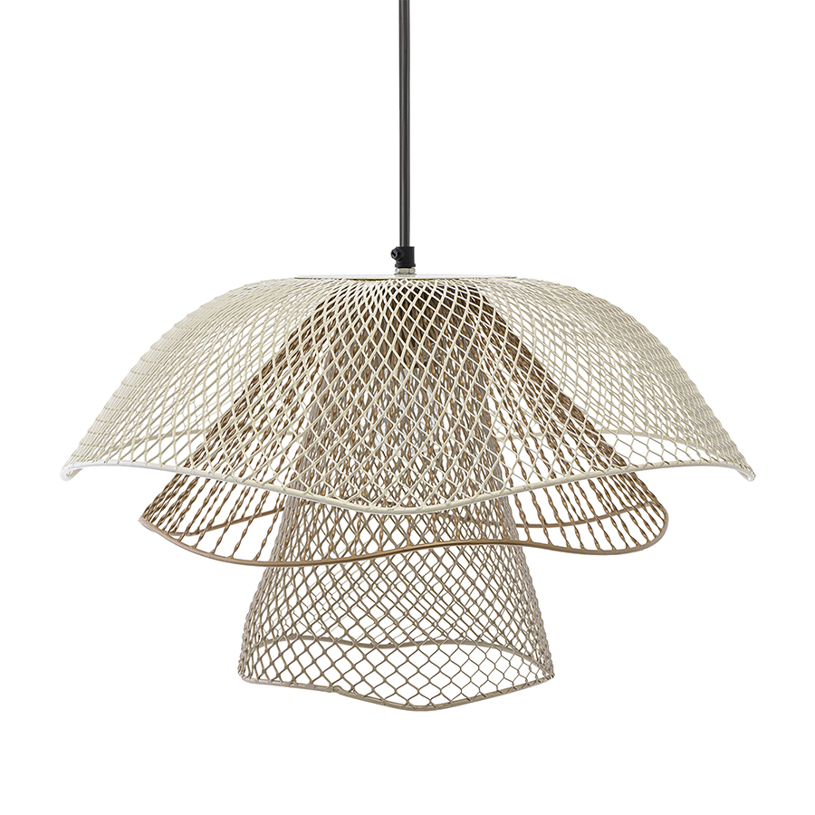 Светильник подвесной Vinger от бренда Bergenson Bjorn – прекрасный способ добавить интерьеру характер и индивидуальность. Подвес привлекает качественным исполнением и интересным дизайном. Трехуровневый плафон из металлической сетки рисует на стенах и потолке живописные тени, создавая в помещении волшебную атмосферу.