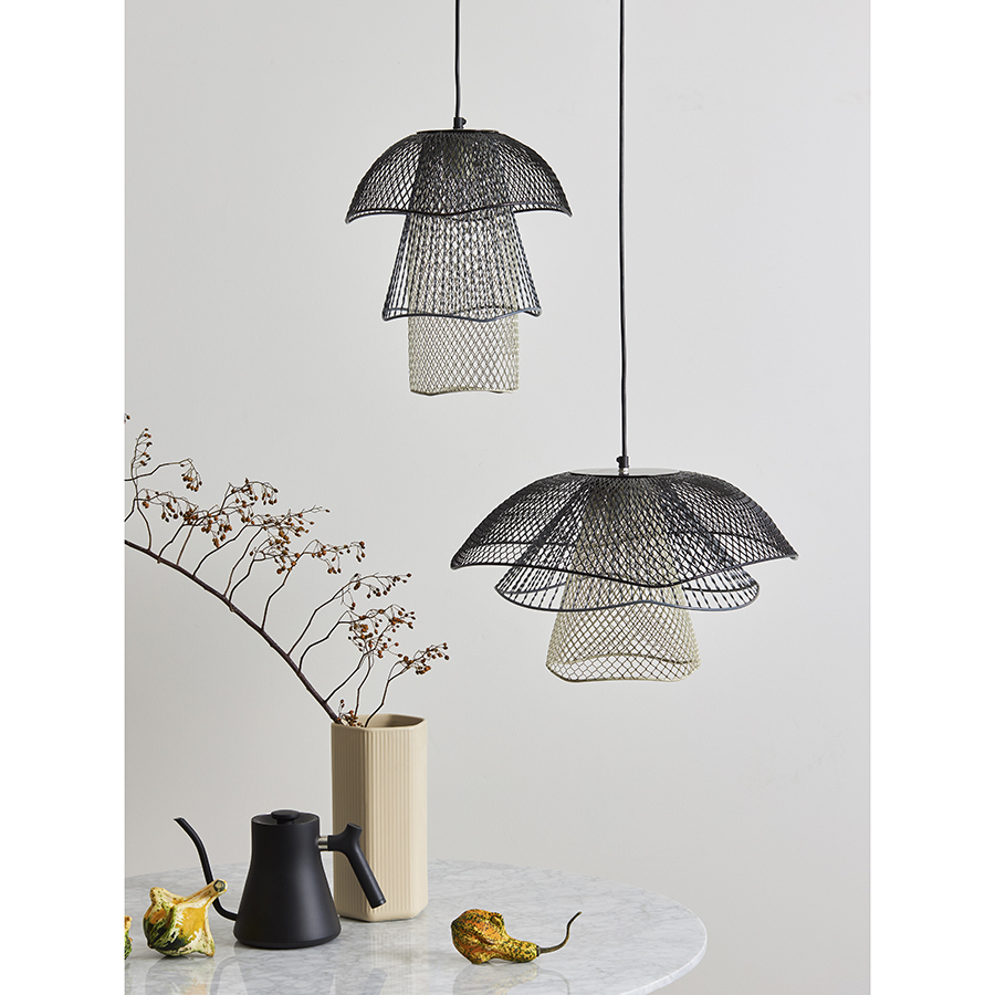 Светильник подвесной Vinger от бренда Bergenson Bjorn – прекрасный способ добавить интерьеру характер и индивидуальность. Подвес привлекает качественным исполнением и интересным дизайном. Трехуровневый плафон из металлической сетки рисует на стенах и потолке живописные тени, создавая в помещении волшебную атмосферу.