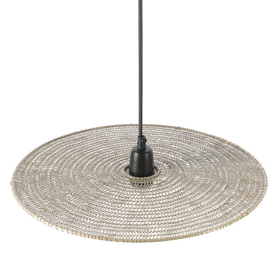 - Светильник с абажуром из железной сетки смотрится необычно и идеально подходит в качестве акцентного элемента.
