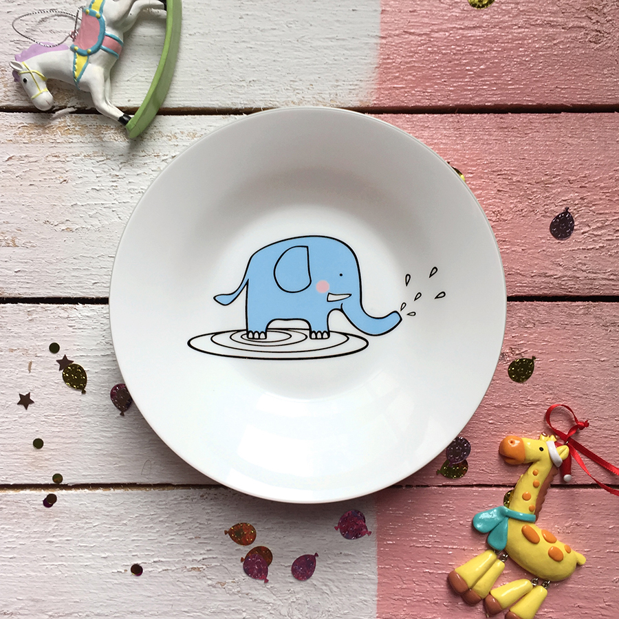 Глубокая тарелка «Слон Бубон» диаметром 20 см вошла в коллекцию «Для самых маленьких». Детская посуда с ярким дизайном научит девчонок и мальчишек самостоятельности, удовлетворит их любопытство и порадует веселыми принтами. Тарелка с бортами изготовлена из высококачественного фарфора, устойчивого к сколам и царапинам. Посуда упакована в фирменную картонную коробку с логотипом бренда.