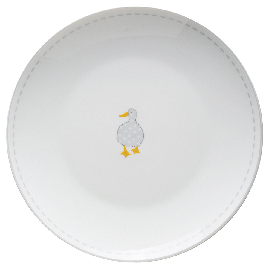 Фарфоровая обеденная тарелка с милым изображением утенка в крапинку станет нежным акцентом на вашем столе.
