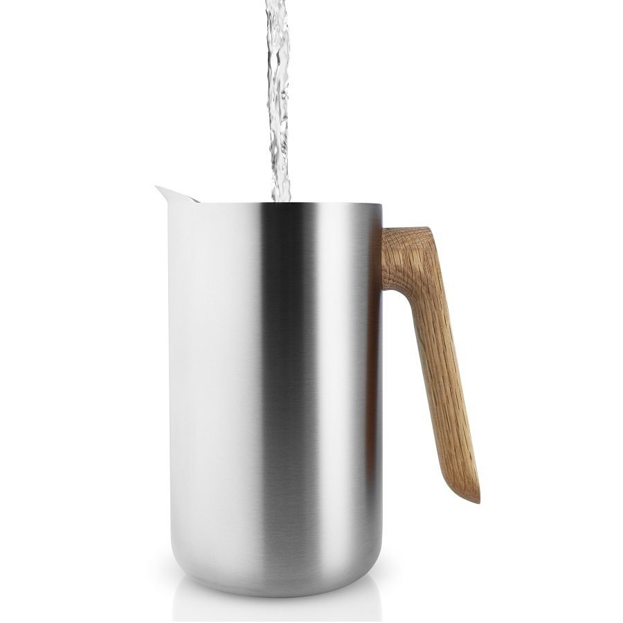 Термокофейник Nordic Kitchen – функциональный и элегантный прибор для приготовления любимого напитка, выполненный из нержавеющей стали. Модель имеет презентабельный внешний вид, за счет чего ее можно использовать для сервировки стола во время завтрака. Изделие функционирует по типу вакуумного кувшина, поэтому надолго сохранит напиток горячим. Носик оснащен специальной системой, которая защищает от проливания. Ручка из натуральной древесины дуба не нагревается во время использования. Запрещено мыть в посудомоечной машине. Принцип действия: добавьте ложку кофейных зерен и залейте кипятком. Перемешайте и поместите плунжер в кувшин, заваривайте кофе около 4 минут. Опустите плунжер и разливайте напиток в чашки. Лаконичное оформление и высокая функциональность составляют суть скандинавского стиля. Коллекция предметов сервировки Nordic Kitchen воплотила все особенности северной эстетики. Простота и изысканность линий подчеркивают безупречный дизайн всей продукции серии.