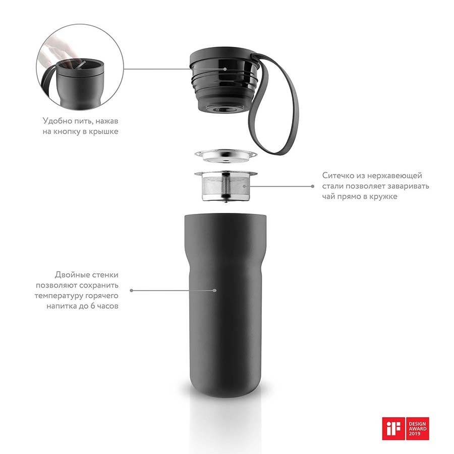 Термокружка из серии Nordic Kitchen прекрасно дополнит скандинавский интерьер кухни. Благодаря инновационной технологии заваривания и хранения теперь наслаждаться ароматным и горячим напитком стало проще. Производитель дополнил корпус посуды вакуумной изоляцией с двойными стенками, за счет которых питье остается горячим в течение нескольких часов. Встроенный фильтр в крышке позволяет заваривать любимый чай прямо в кружке. Пробка с герметичным уплотнителем защищает напиток от проливания, поэтому его можно взять с собой в дорогу или на прогулку. Крышка дополнена надежным силиконовым ремешком, чтобы термокружку было удобно носить с собой.