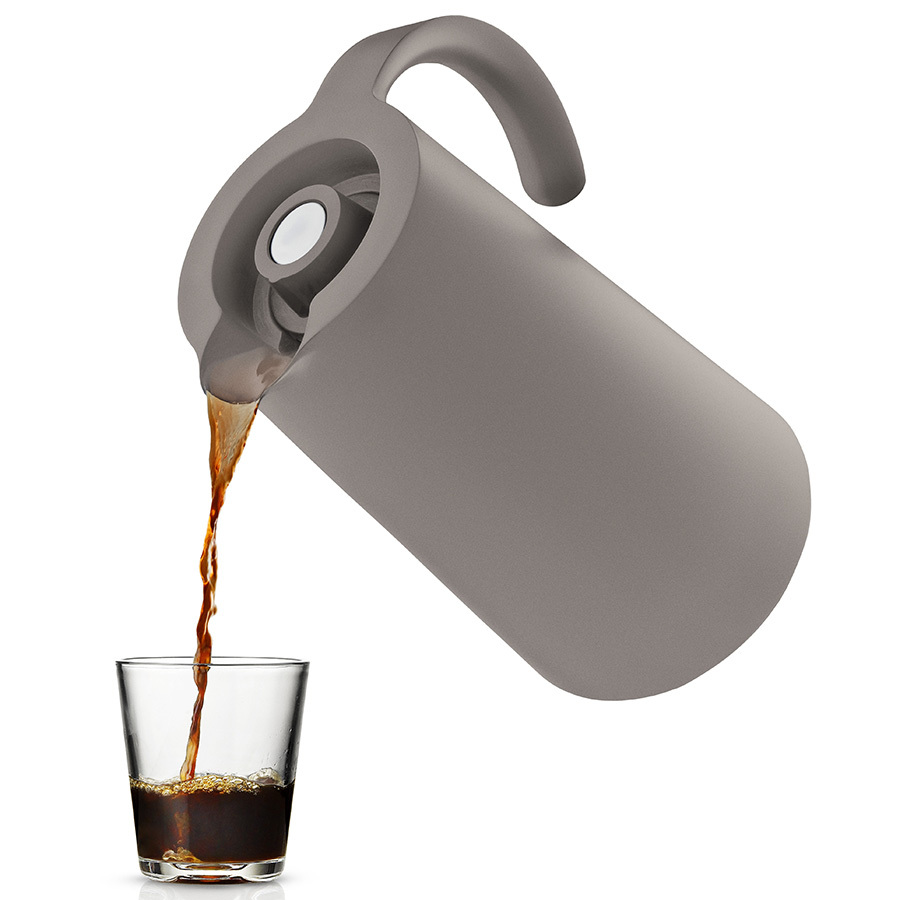 Двойные стенки с вакуумной изоляцией сохранят кофе и чай горячими в течение нескольких часов. Кувшин оснащен удобной кнопкой блокировки. Крышка легко откручивается.