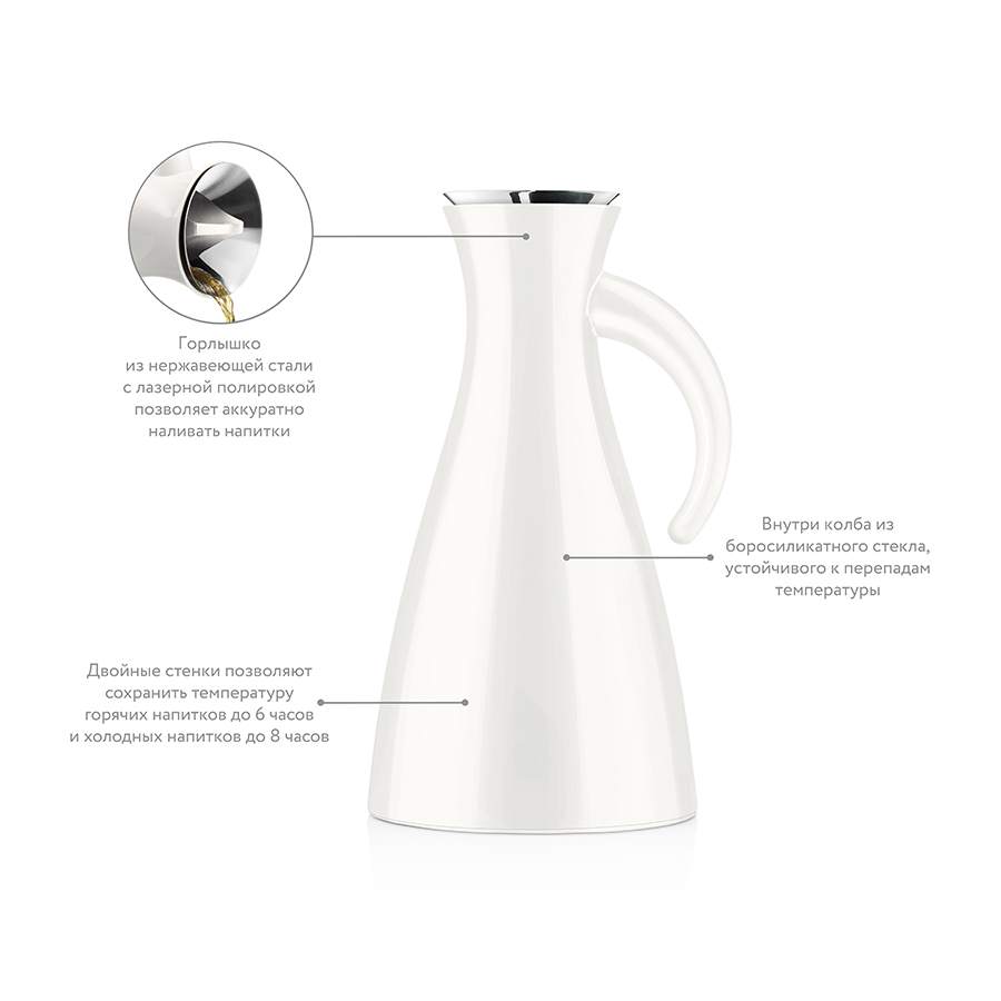 Стильный термокувшин Vacuum станет главным украшением в интерьере кухни или столовой.