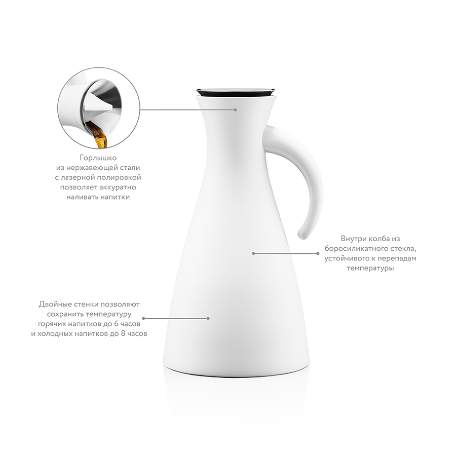 Стильный термокувшин Vacuum станет главным украшением в интерьере кухни или столовой.