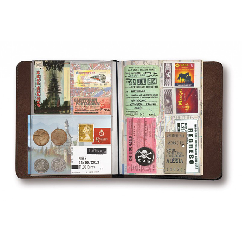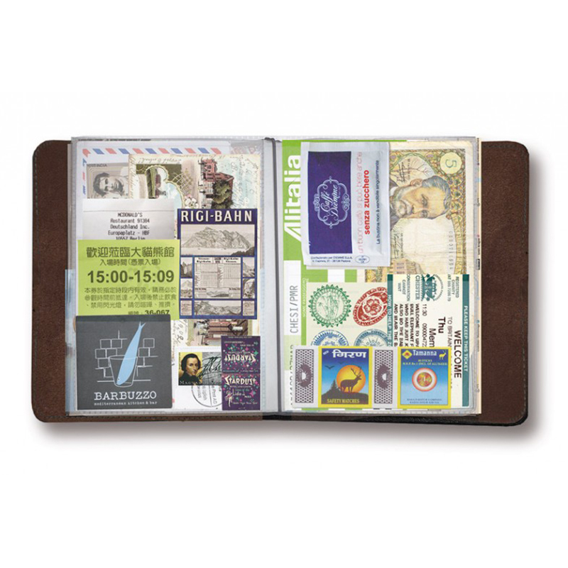Тетрадь путешественника Solena – удобная книга для хранения различных записей и напоминаний. С помощью этого аксессуара можно собрать в одном месте заметки, зарисовки, монеты, карты городов, фотографии и открытки, использованные билеты, подставки для пивных кружек и сувениры. Органайзер состоит из кожаной обложки, линованного блокнота с 42 страницами и 16 файлов с пластиковыми карманами различных размеров.