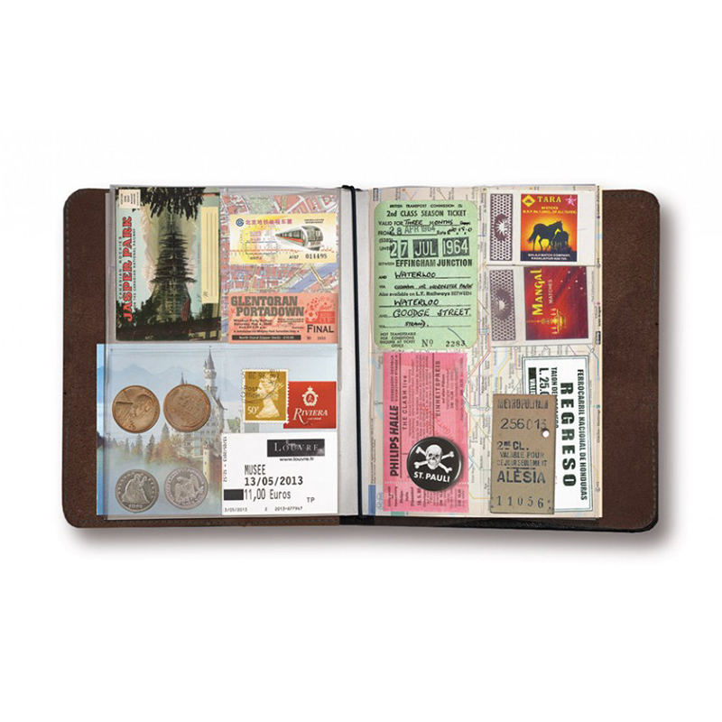 Тетрадь путешественника Zigzag – удобная книга для хранения различных записей и напоминаний. С помощью этого аксессуара можно собрать в одном месте заметки, зарисовки, монеты, карты городов, фотографии и открытки, использованные билеты, подставки для пивных кружек и сувениры. Органайзер состоит из кожаной обложки, линованного блокнота с 42 страницами и 16 файлов с пластиковыми карманами различных размеров.