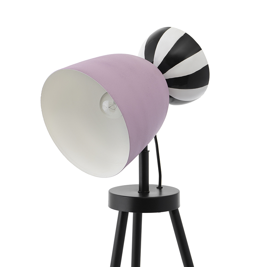 Материал: железо. Размеры: 37х37х145 см. Цвет: черный/белый/лиловый. Тип цоколя: Е27. Степень пылевлагозащиты: IP20. Максимальная мощность ламп: 25 Вт. Напряжение: 220-240 В. Длина провода: 3,5 м. Переключатель: ножной. Площадь освещения: 1,7 кв.м. Лампы в комплекте: нет.