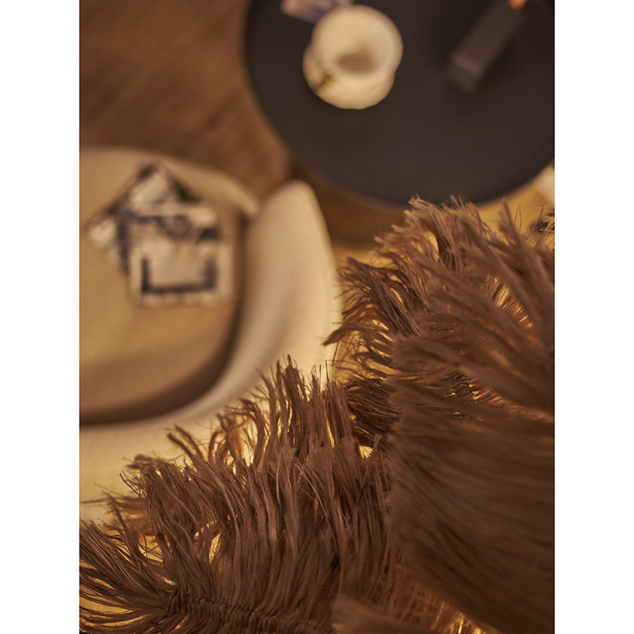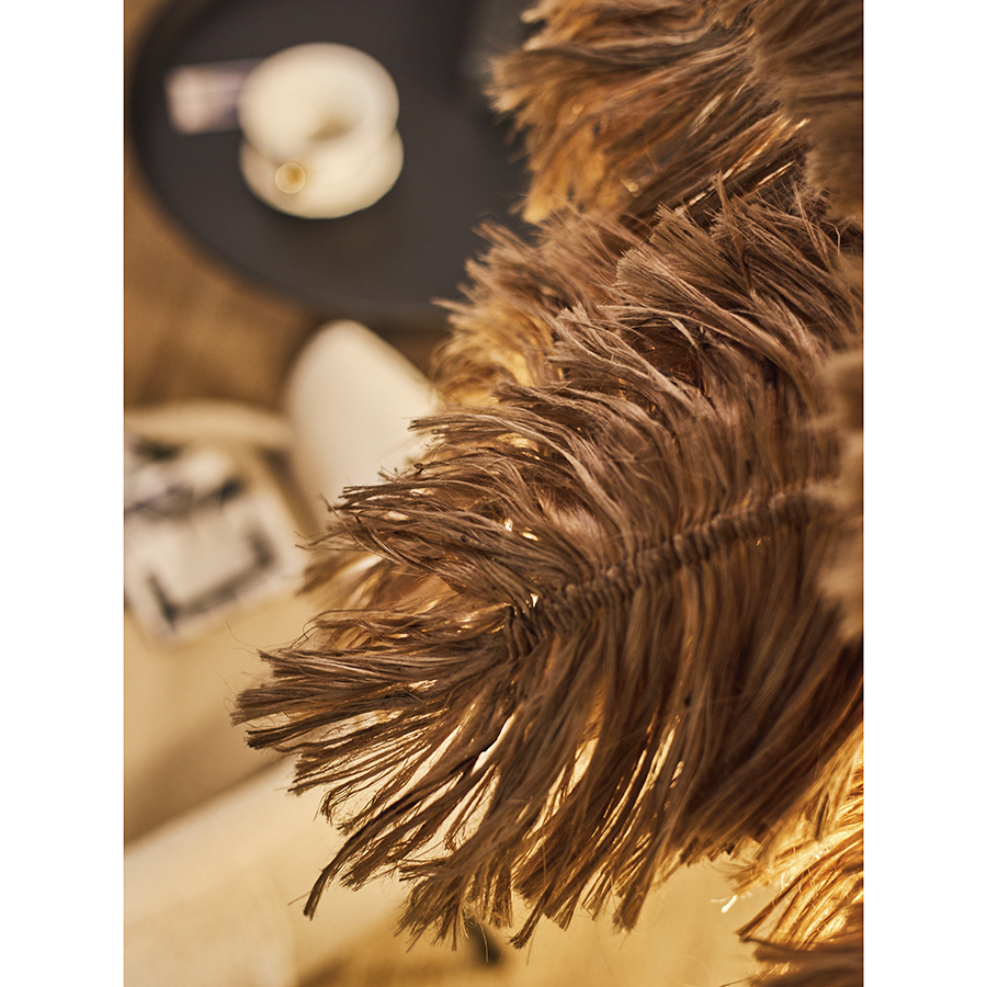 - Светильник имеет основание из алюминия и плафон из растительного волокна, что делает его надежным и долговечным, но при этом легким и удобным в перемещении.