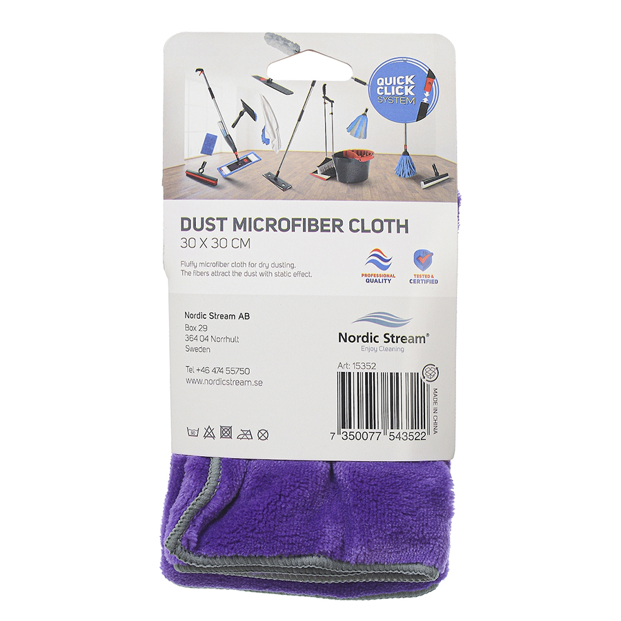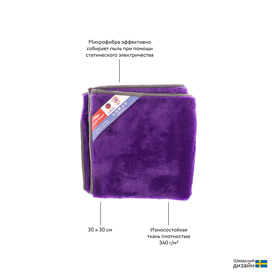 Тряпка для пыли предназначена для сухой уборки. Мягкая и пушистая ткань отлично притягивает пыль, не оставляя разводов и ворсинок. Микрофибра выполнена из 100% полиэстера и выдерживает до 300 стирок при температуре до 60?.
