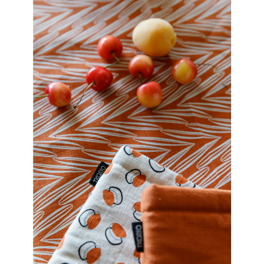 Варежка-прихватка из хлопка с графичным принтом «Ягоды» из коллекции Russian North – универсальный кухонный аксессуар, который станет надежным помощником хозяйке на кухне. Наполнитель из пенополиуретана надолго сохранит изделие прохладным даже при длительном контакте с горячими поверхностями. Внешняя и внутренняя части выполнены из гипоаллергенного хлопка. Дизайн разработан таким образом, чтобы максимально сохранить природные мотивы в узоре и натуральные цвета. Изделие органично впишется как в классический, так и в современные скандинавские интерьерные стили и минимализм. Тип плетения: кулирка. Плотность материала - 290 GSM. Размер: 26х14 см ! Максимальная температура стирки 40° C ! Гладить при максимальной температуре 150° C ! Барабанная сушка запрещена ! Не отбеливать ! Возможна сухая чистка