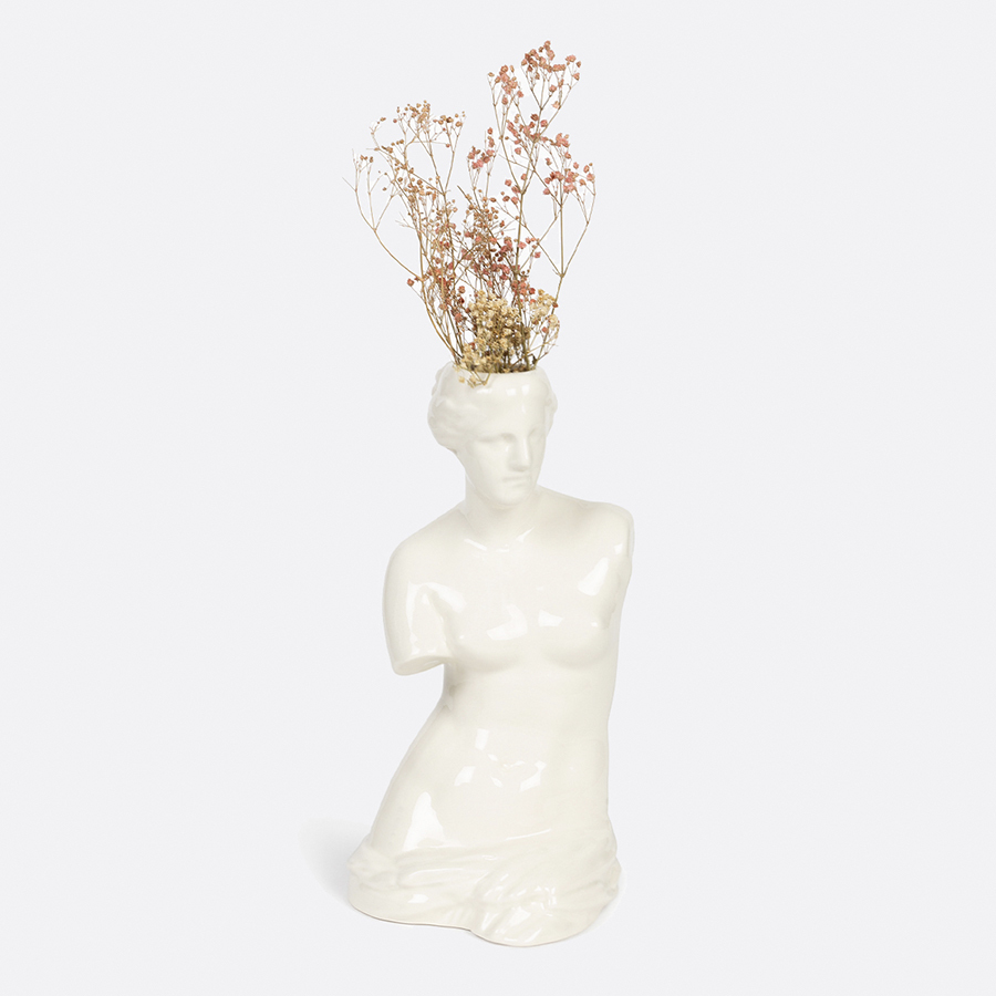 Стильная ваза Venus, выполненная в форме богини Венеры, – вдохновленный античным искусством аксессуар и подарок, способный ярко выразить любовь к близкому человеку. Скульптура с плавными изгибами подчеркнет красоту цветов и станет органичной частью как классического, так и современного интерьера. Экологически чистая керамика безвредна для окружающей среды.